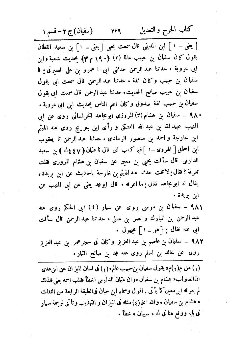 [يعني - 1] ابن المديني قال سمعت يحيى [يعنى - 1] بن سعيد القطان يقول كان سفيان بن حبيب عالما (2) (190 م 3) بحديث شعبة وابن أبي عروبة.