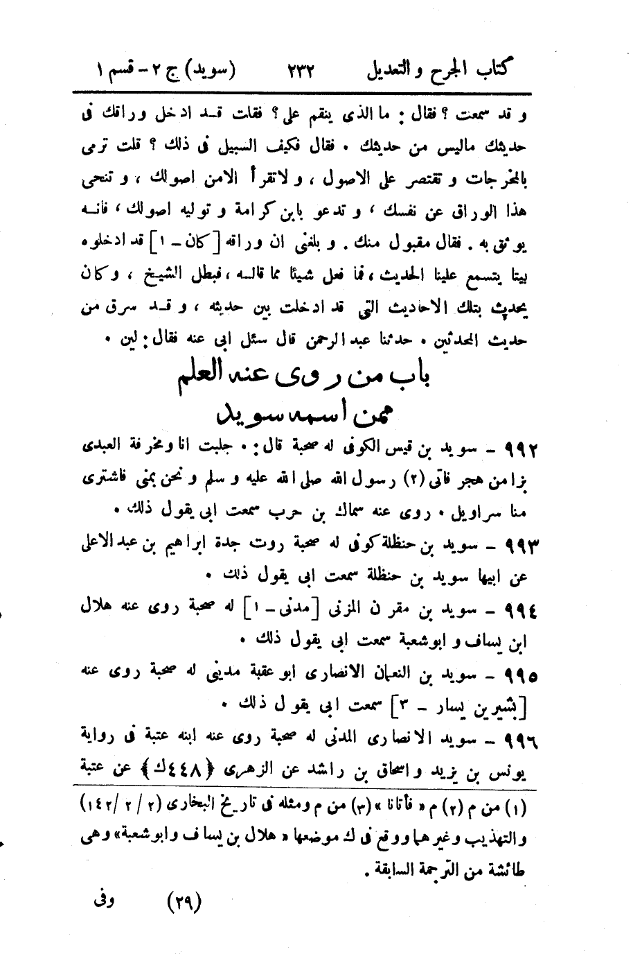 993 - سويد بن حنظلة كوفى له صحبة روت جدة إبراهيم بن عبد الأعلى عن أبيها سويد بن حنظلة سمعت أبي يقول ذلك.