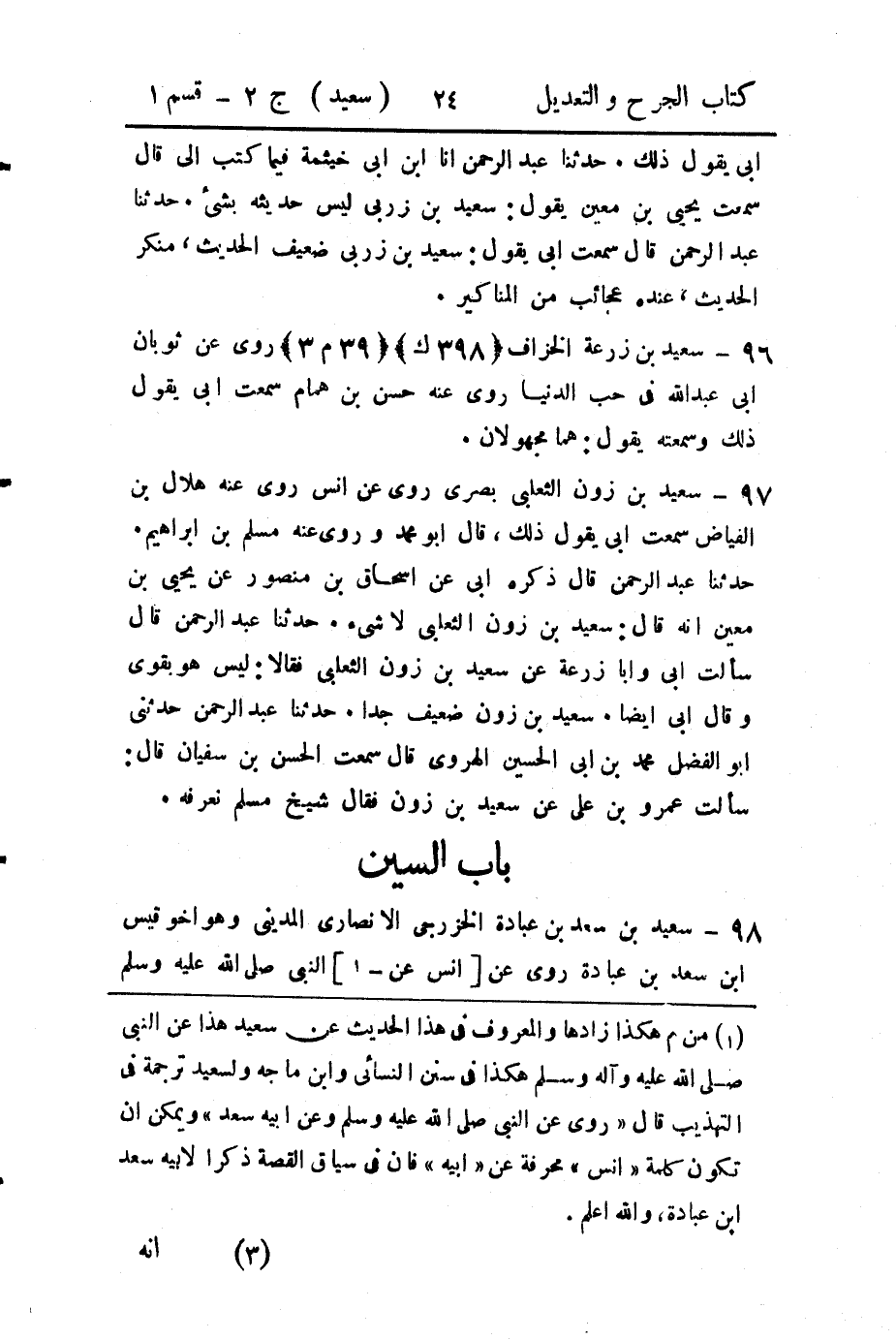 96 - سعيد بن زرعة الخراف (398 ك) (39 م 3) روى عن ثوبان أبي عبد الله في حب الدنيا روى عنه حسن بن همام سمعت أبي يقول ذلك وسمعته يقول: هما مجهولان.