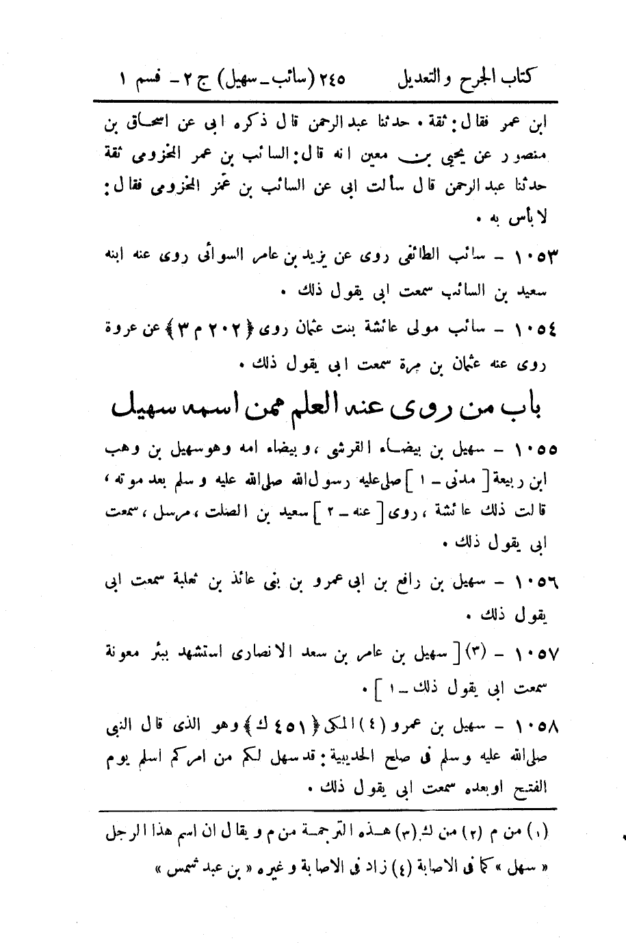 1058 - سهيل بن عمرو (4) المكى (451 ك) وهو الذي قال النبي صلى الله عليه وسلم في صلح الحديبية: قد سهل لكم من أمركم أسلم يوم الفتح أو بعده سمعت أبي يقول ذلك.