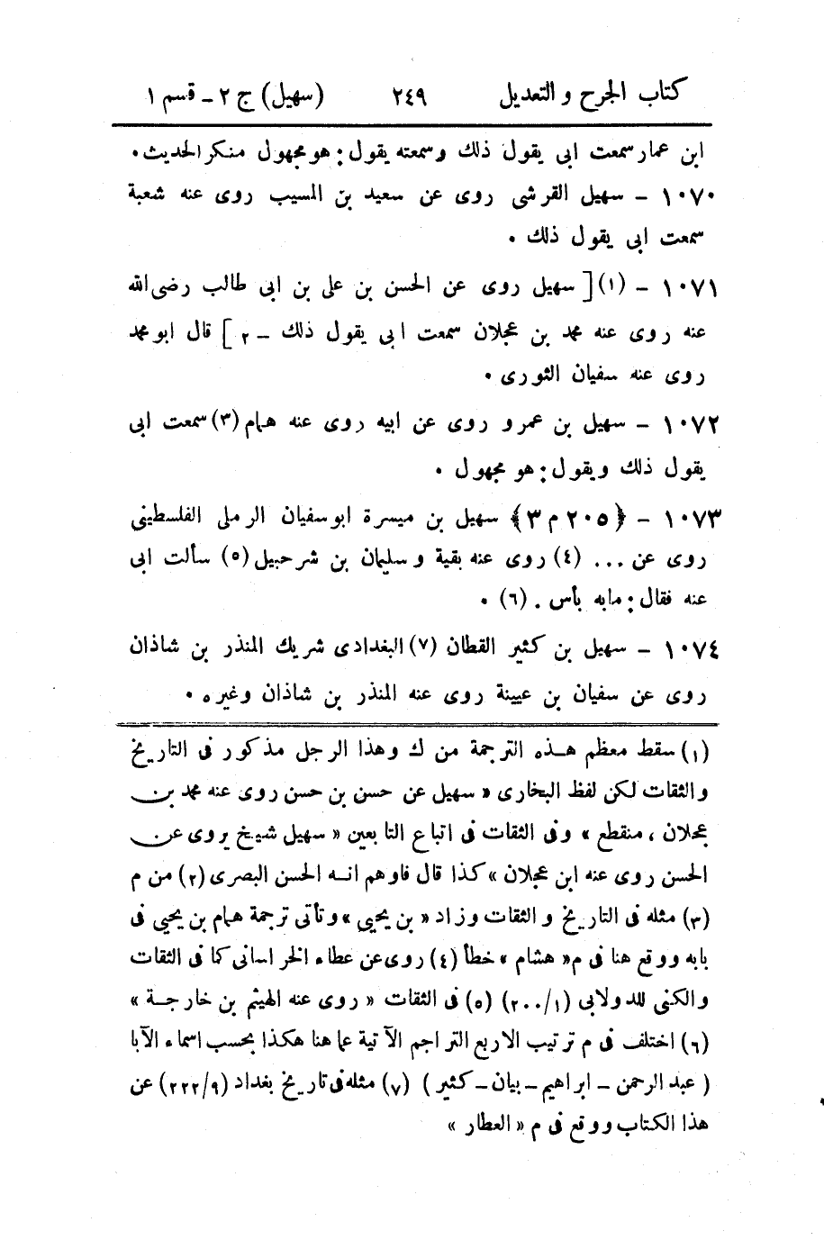 1071 - (1) [سهيل روى عن الحسن بن علي بن أبي طالب رضي الله عنه روى عنه محمد بن عجلان سمعت أبي يقول ذلك - 2] قال أبو محمد روى عنه سفيان الثوري.