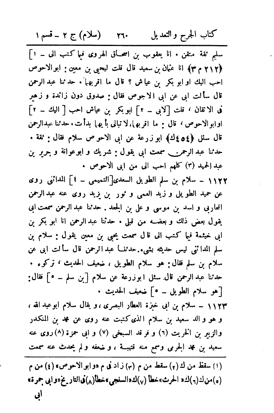 1122 - سلام بن سلم الطويل السعدي [التميمي - 4] المدائني روى عن حميد الطويل وزيد العمي وثور بن يزيد روى عنه عبد الرحمن المحاربي وأسد بن موسى وعلي بن الجعد.