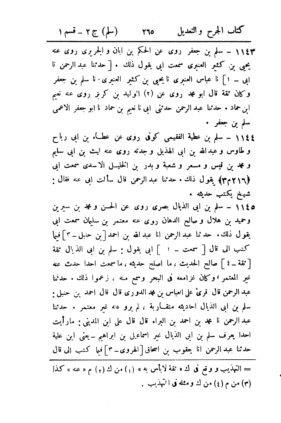 1144 - سلم بن عطية الفقيمي كوفي روى عن عطاء بن أبي رباح وطاوس وعبد الله بن أبي الهذلى وجدته روى عن ليث بن أبي سليم ومحمد بن قيس ومسعر وشعبة وبدر بن الخليل الأسدي سمعت ابى (216 م 3) يقول ذلك.