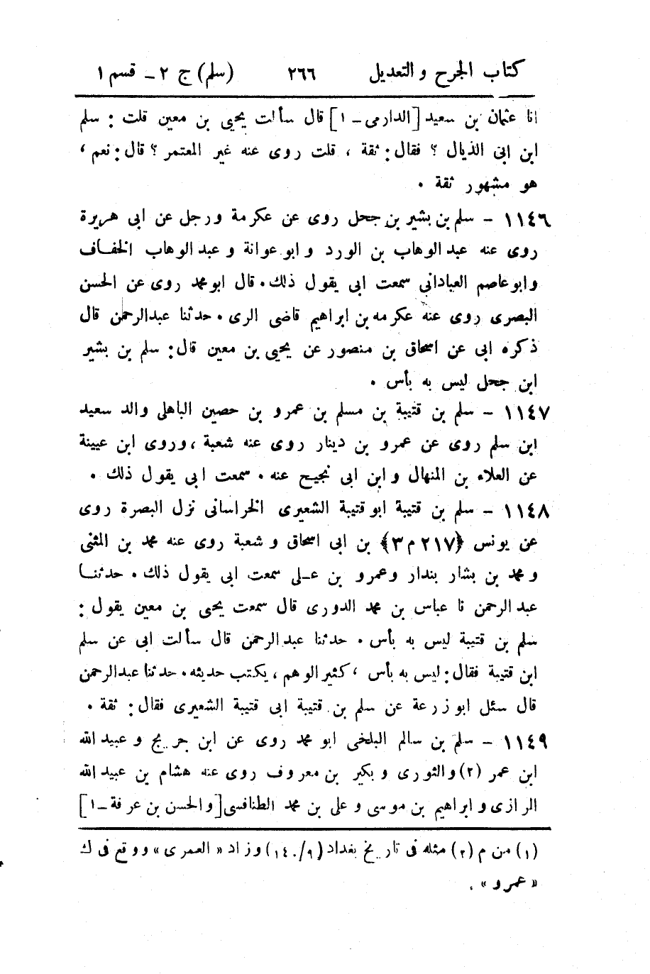 1148 - سلم بن قتيبة أبو قتيبة الشعيري الخراساني نزل البصرة روى عن يونس (217 م 3) بن أبي إسحاق وشعبة روى عنه محمد بن المثنى ومحمد بن بشار بندار وعمرو بن علي سمعت أبي يقول ذلك.