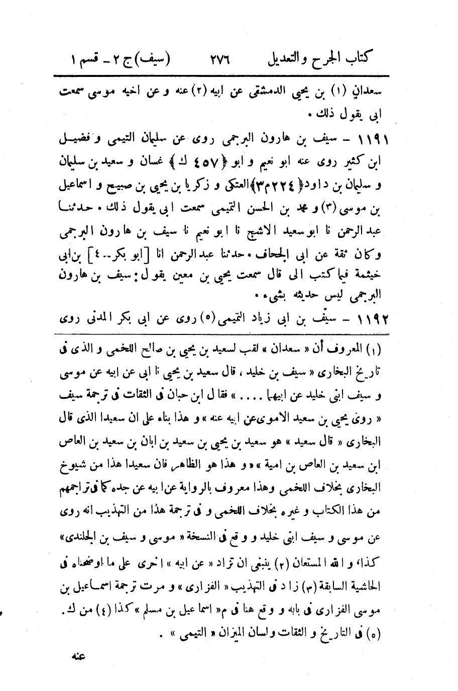 (1) المعروف أن " سعدان " لقب لسعيد بن يحيى بن صالح اللخمي والذى في تاريخ البخاري " سيف بن خليد، قال سعيد بن يحيى نا ابى عن ابيه عن موسى وسيف ابني خليد عن ابيهما ... " فقال ابن حبان في الثقات في ترجمة سيف " روى يَحْيَى بْنُ سَعِيدٍ الأُمَوِيُّ عَنْ ابيه عنه " وهذا بناء على ان سعيدا الذى قال