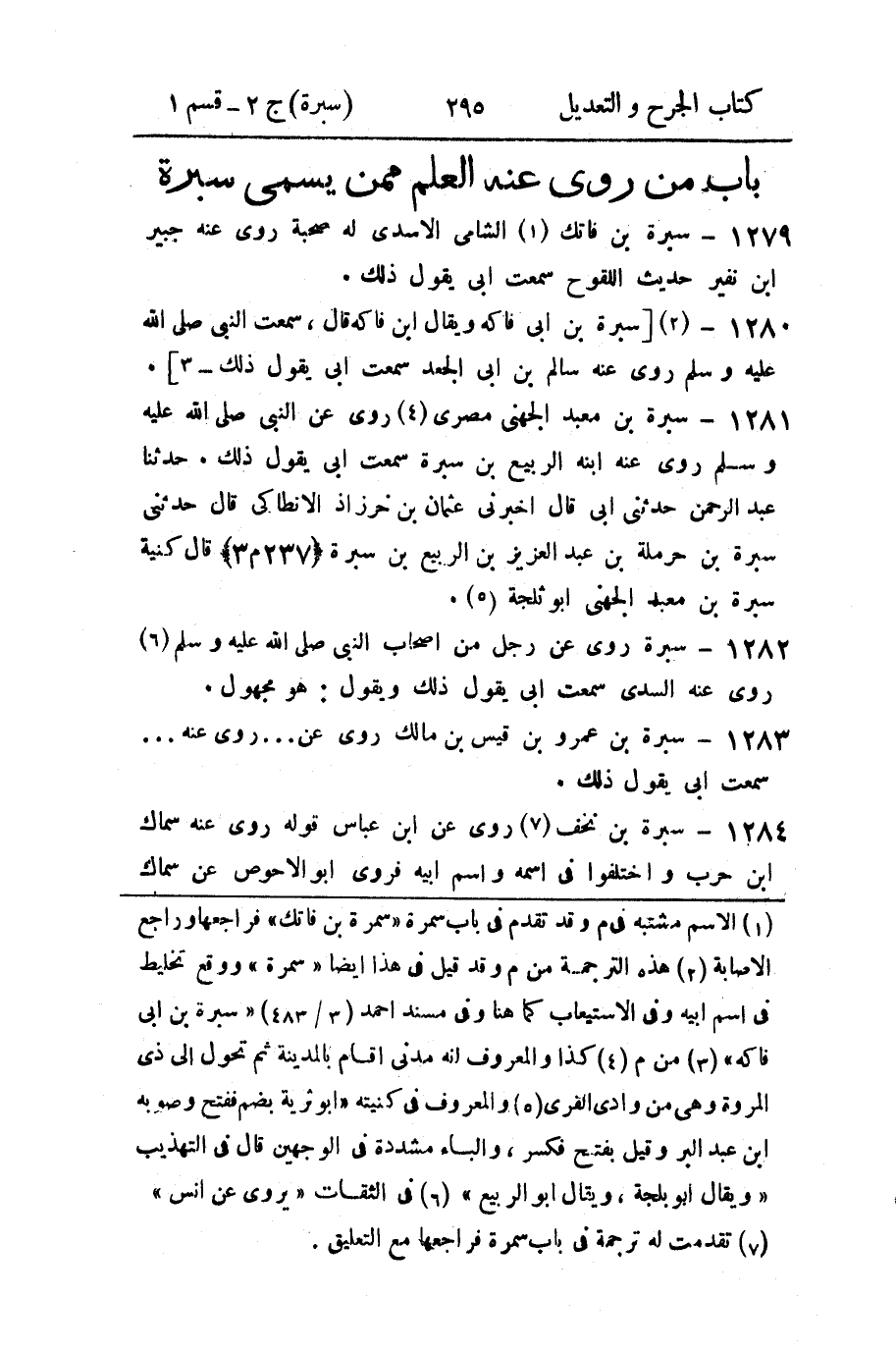 باب من روى عنه العلم ممن يسمى سبرة