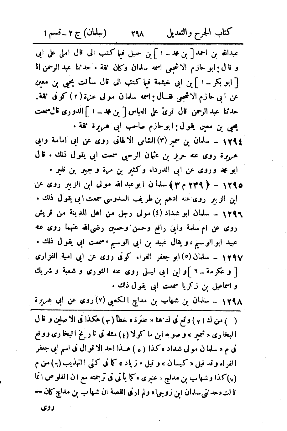 1297 - سلمان (5) أبو جعفر الفراء كوفي روى عن أبي أمية الفزاري [وعكرمة - 6] وابن أبي ليلى روى عنه الثوري وشعبة وشريك وإسماعيل بن زكريا سمعت أبي يقول ذلك.
