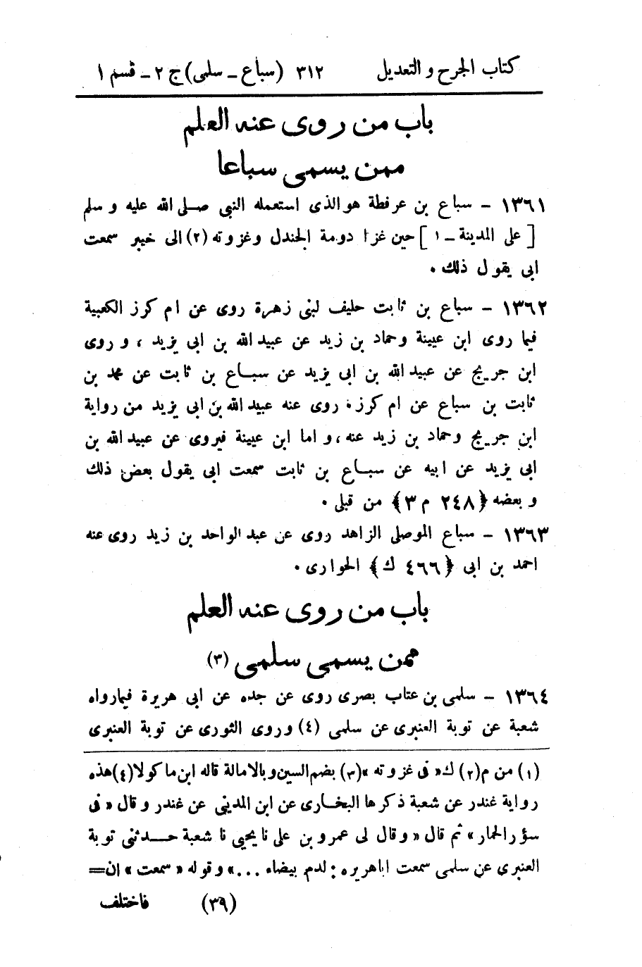 1363 - سباع الموصلي الزاهد روى عن عبد الواحد بن زيد روى عنه أحمد بن ابى (466 ك) الحواري.