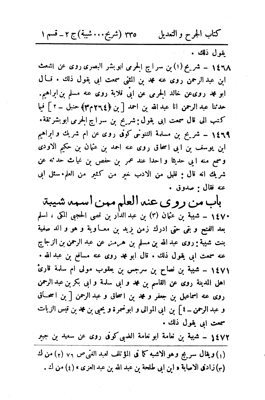1468 - شريح (1) بن سراج الجرمي أبو بشر البصري روى عن اشعث ابن عبد الرحمن روى عنه محمد بن المثنى سمعت أبي يقول ذلك.