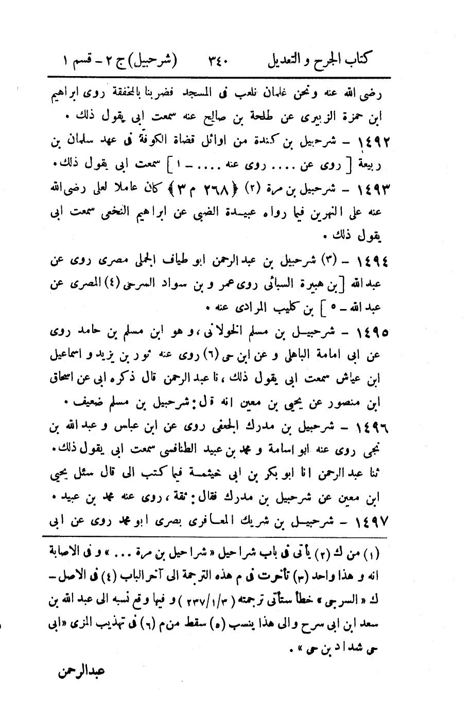 1494 - (3) شرحبيل بن عبد الرحمن أبو طياف الجملي مصري روى عن عبد الله [بن هبيرة السبائي روى عمرو بن سواد السرحي (4) المصري عن