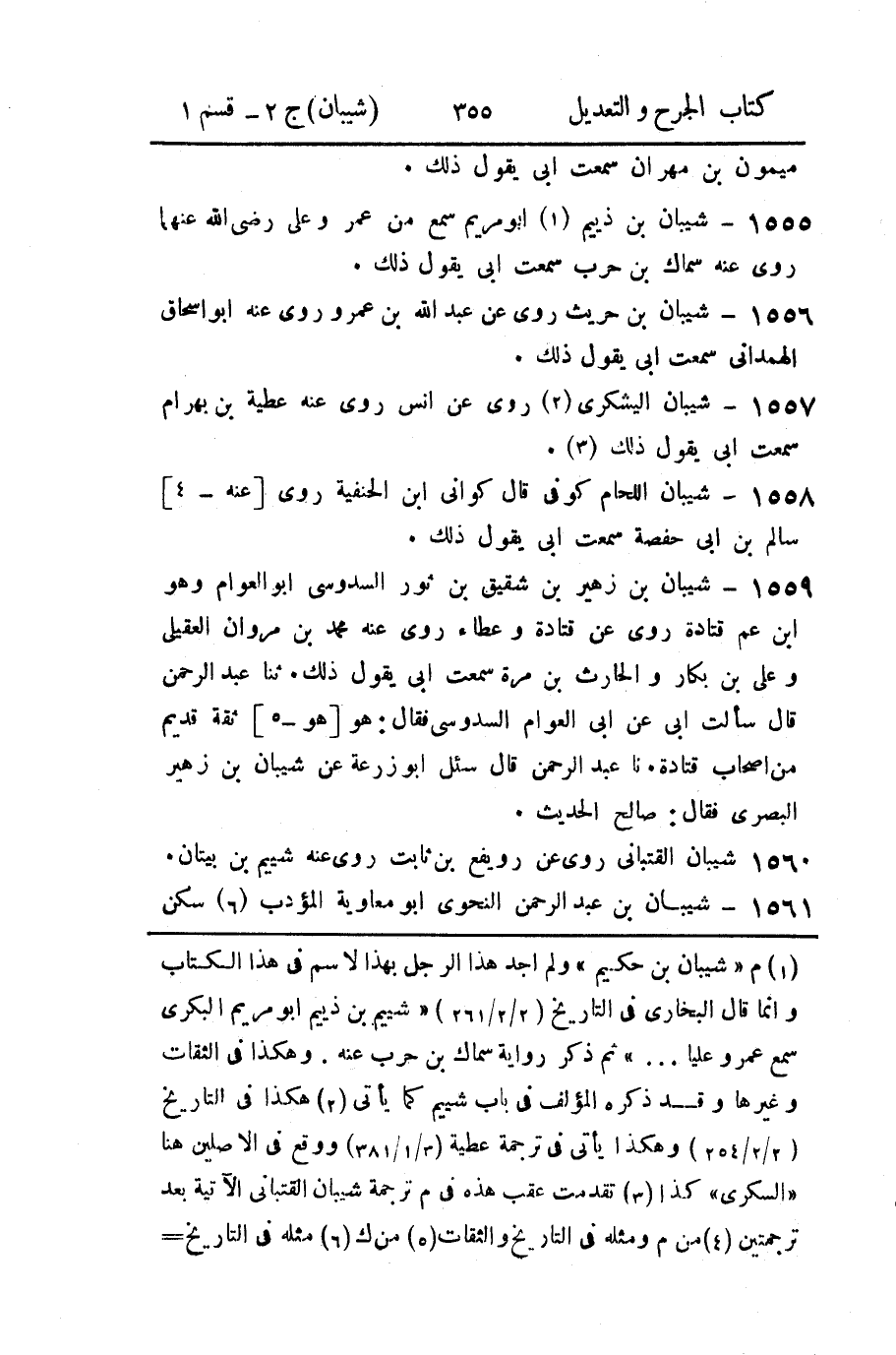 (1) م " شيبان بن حكيم " ولم اجد هذا الرجل بهذا الاسم في هذا الكتاب وانما قال البخاري في التاريخ (2 / 2 / 261) " شييم بن ذييم أبو مريم البكري سمع عمر وعليا ... " ثم ذكر رواية سماك بن حرب عنه.