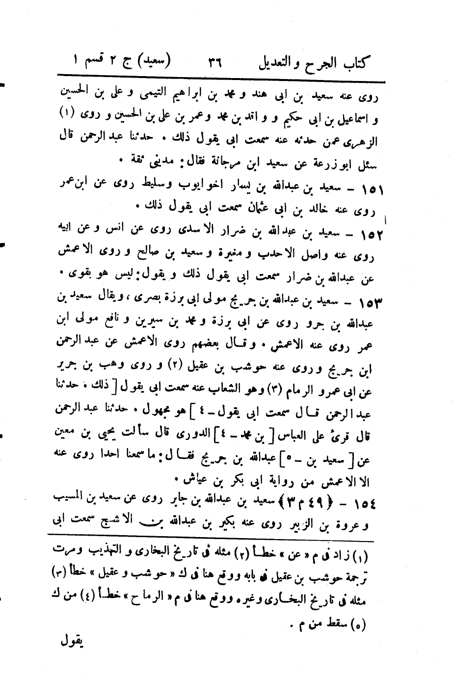 151 - سعيد بن عبد الله بن يسار أخو أيوب وسليط روى عن ابن عمر روى عنه خالد بن أبي عثمان سمعت أبي يقول ذلك.