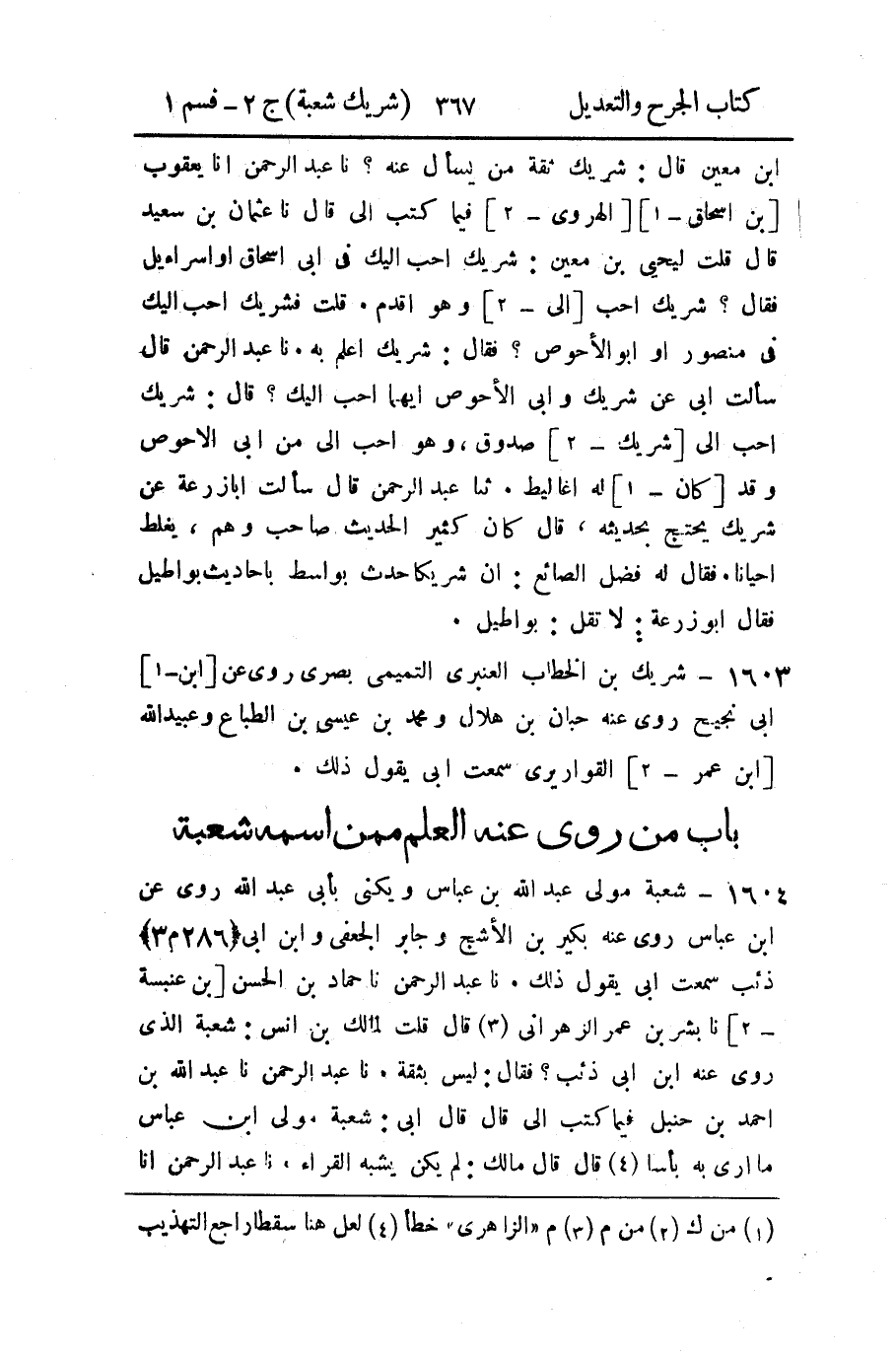 1604 - شعبة مولى عبد الله بن عباس ويكنى بأبي عبد الله روى عن ابن عباس روى عنه بكير بن الأشج وجابر الجعفي وابن ابى (286 م 3) ذئب سمعت أبي يقول ذلك.