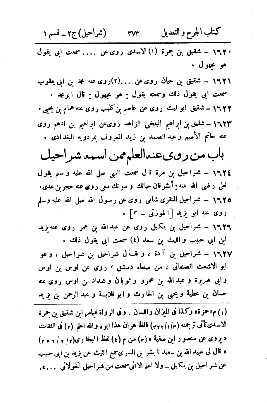 1625 - شراحيل المنقري شامي روى عن رسول الله صلى الله عليه وسلم روى عنه أبو يزيد [الهوزني - 3] .