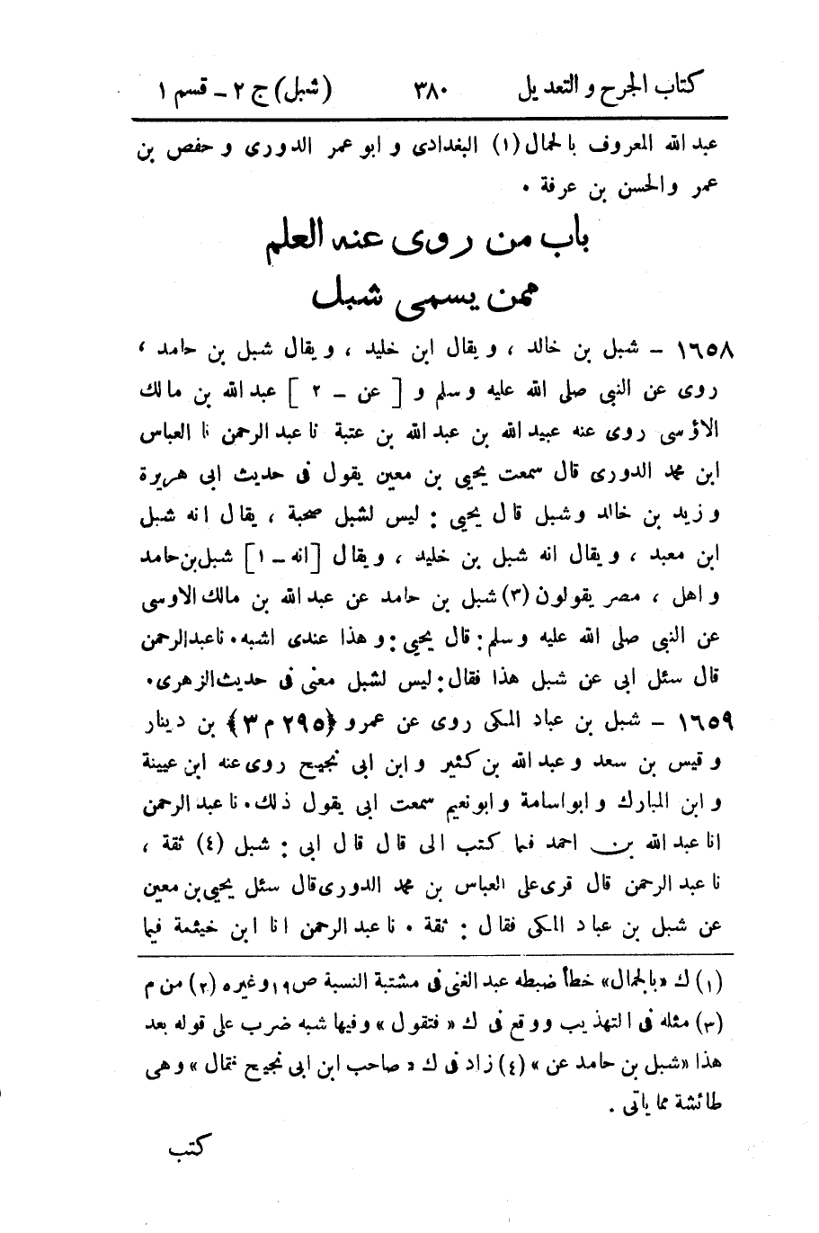 باب من روى عنه العلم ممن يسمى شبل