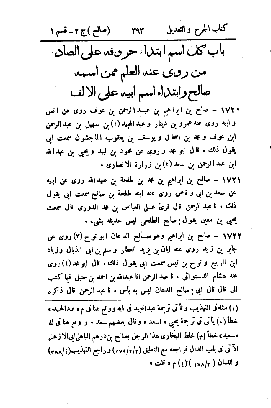1722 - صالح بن إبراهيم وهو صالح الدهان أبو نوح (3) روى عن جابر بن زيد روى عنه أبان بن يزيد العطار وسلم بن ابى الذيال وزياد ابن الربيع ونوح بن قيس سمعت أبي يقول ذلك.