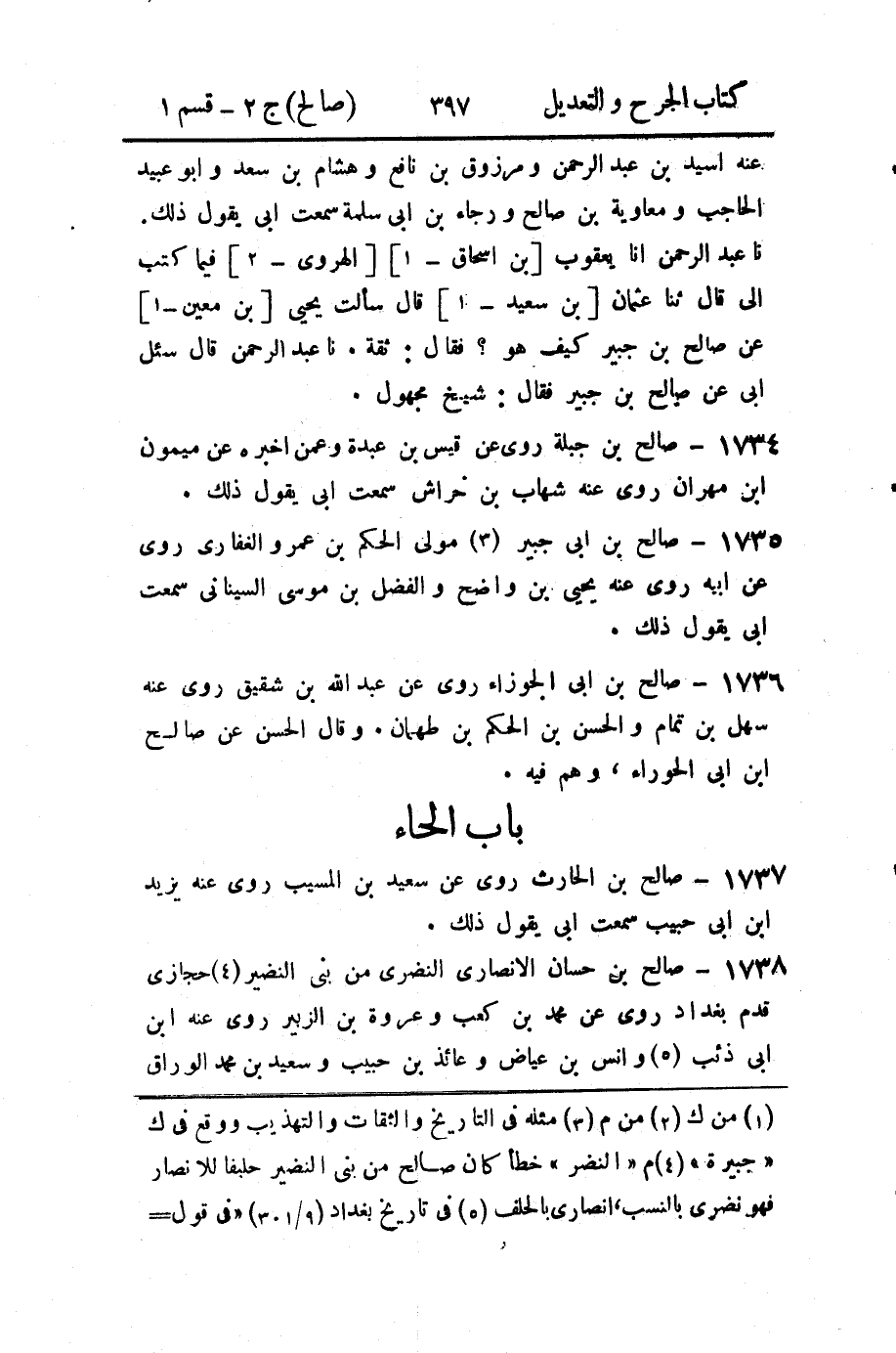 " جبيرة " (4) م " النضر " خطأ كان صالح من بنى النضير حليفا للانصار فهو نضرى بالنسب، انصاري بالحلف (5) في تاريخ بغداد (9 / 301) " في قول = (*)