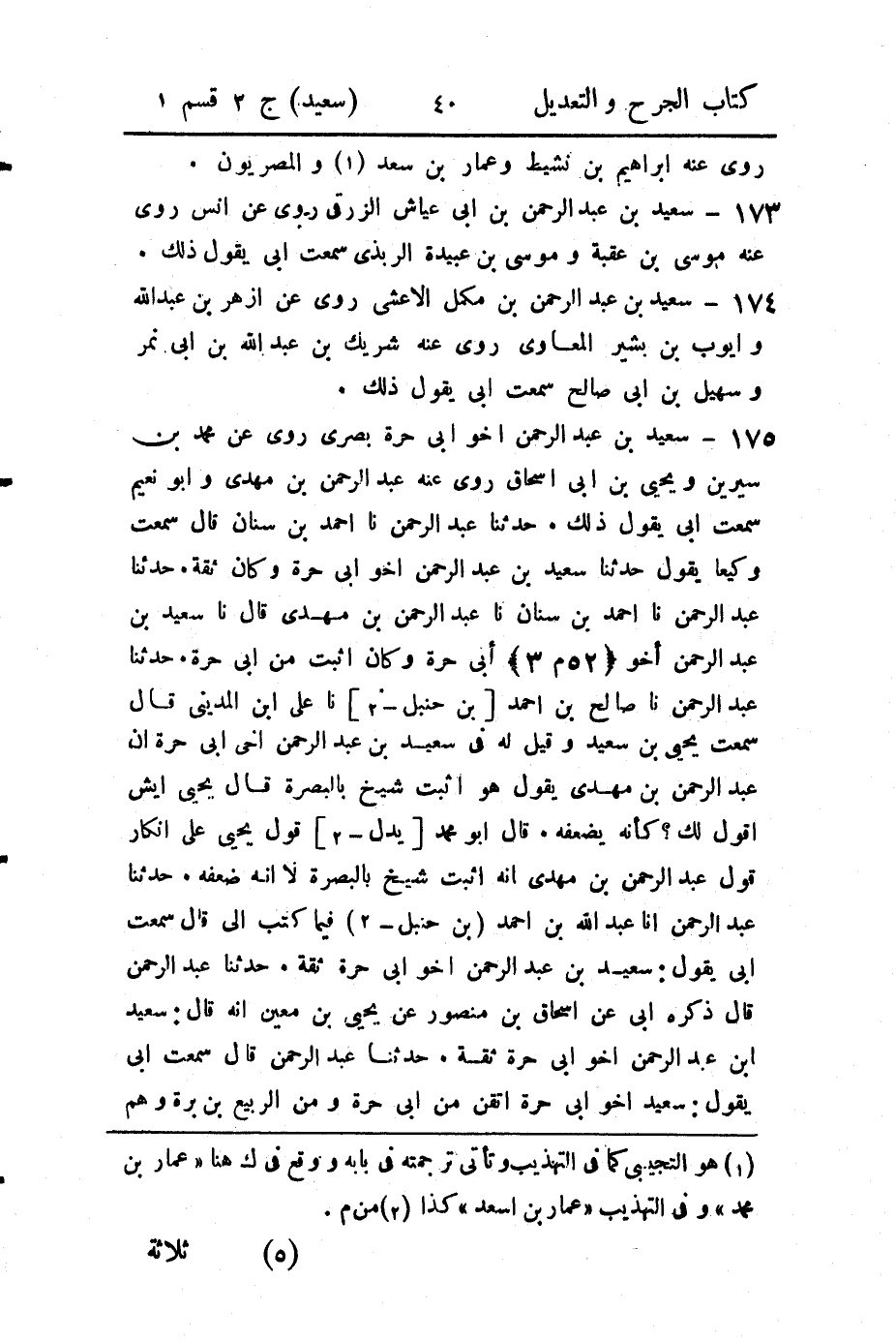 حدثنا عبد الرحمن نا أحمد بن سنان نا عبد الرحمن بن مهدي قال نا سعيد بن عبد الرحمن أخو (52 م 3) أبي حرة وكان أثبت من أبي حرة.