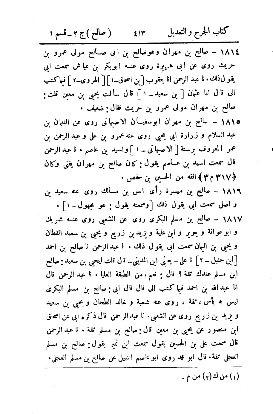 1815 - صالح بن مهران أبو سفيان الأصبهاني روى عن النعمان بن عبد السلام وزرارة أبي يحيى روى عنه عمرو بن علي وعبد الرحمن بن عمر المعروف برستة [الأصبهاني - 1] وأسيد بن عاصم.