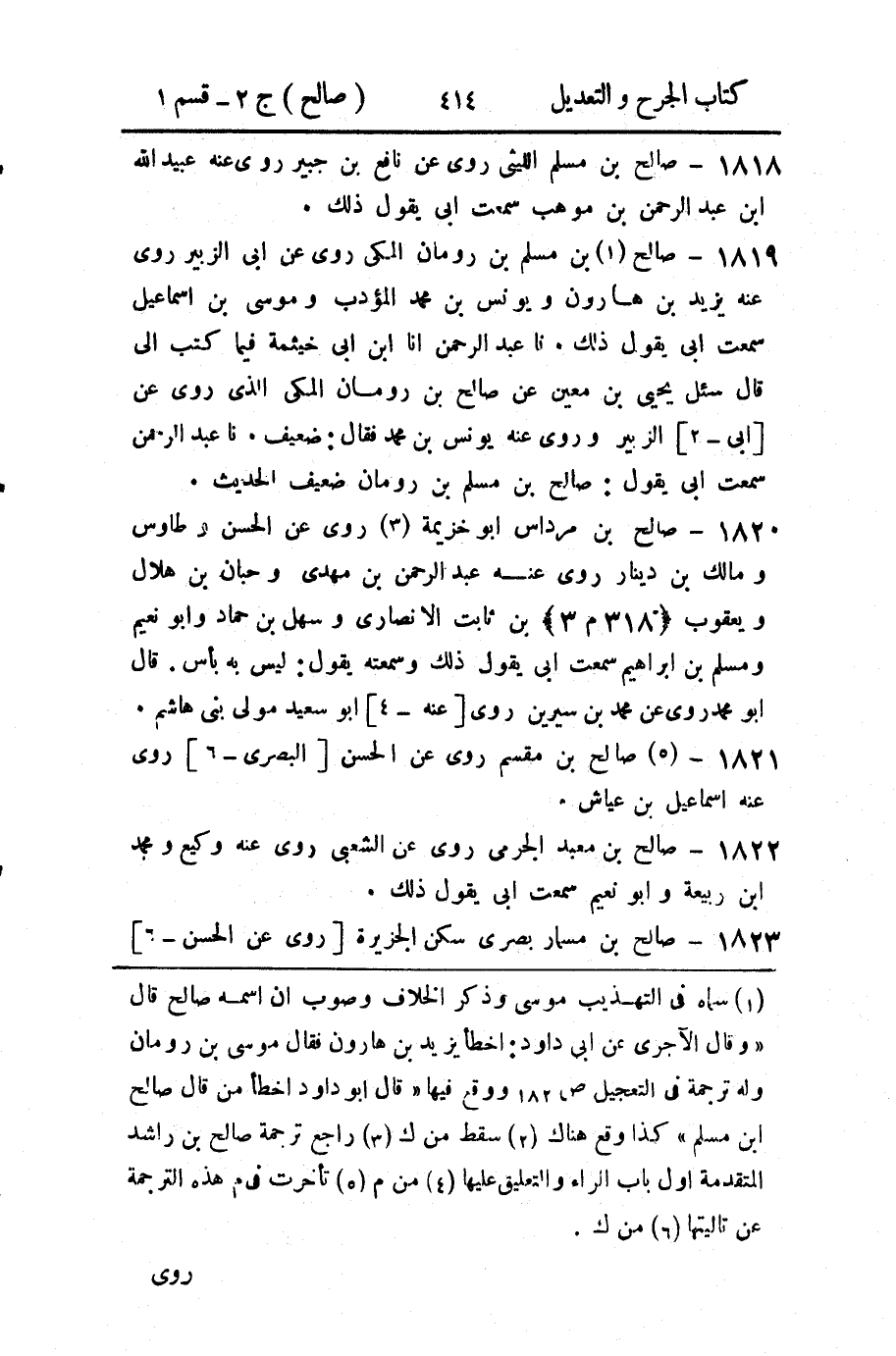 1819 - صالح (1) بن مسلم بن رومان المكي روى عن أبي الزبير روى عنه يزيد بن هارون ويونس بن محمد المؤدب وموسى بن إسماعيل سمعت أبي يقول ذلك.