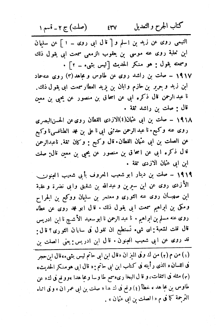 1917 - صلت بن راشد روى عن طاوس ومجاهد (3) روى عنه حماد ابن زيد وجرير بن حازم وأبان بن يزيد العطار سمعت أبي يقول ذلك.