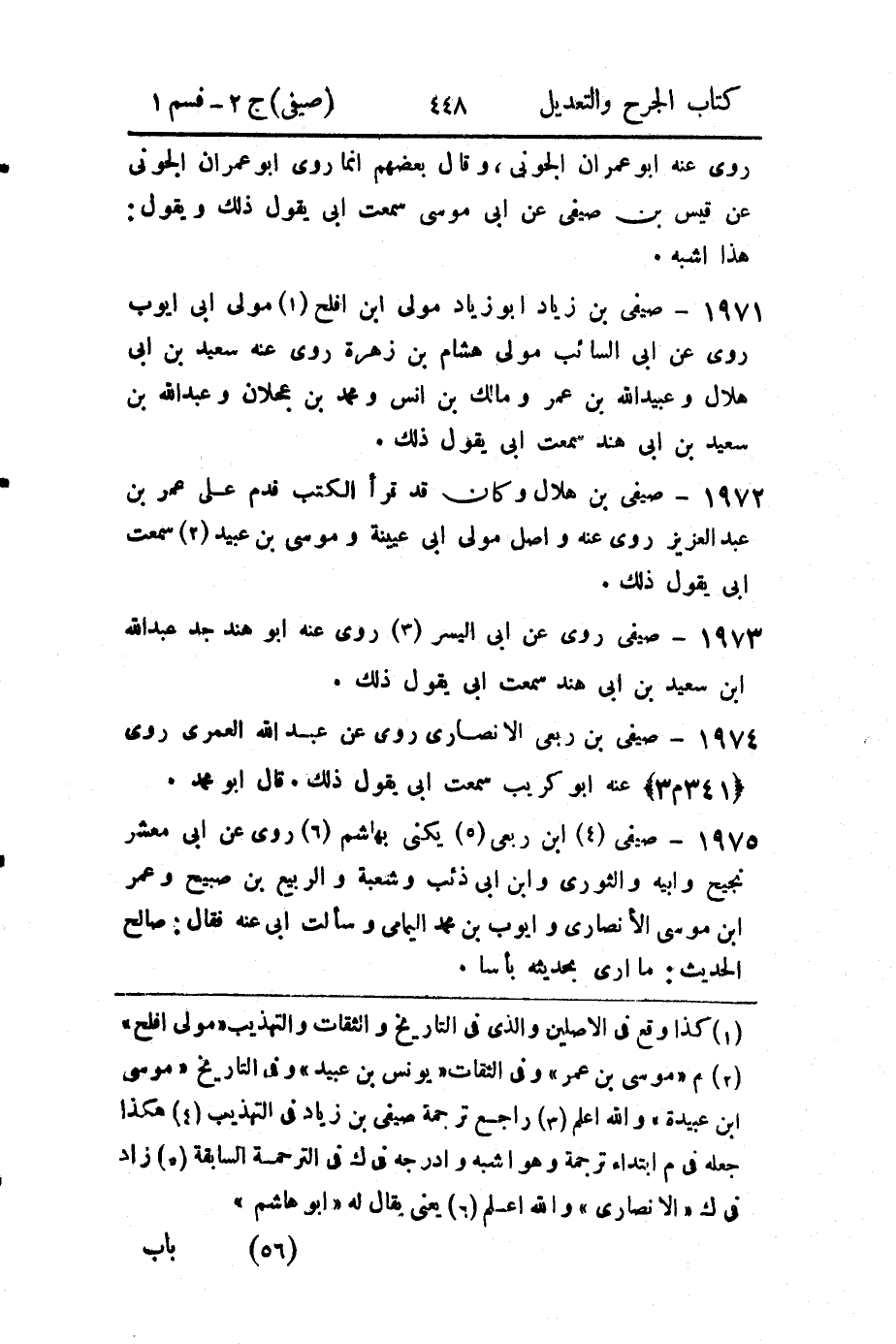1972 - صيفى بن هلال وكان قد قرأ الكتب قدم على عمر بن عبد العزيز روى عنه واصل مولى أبي عيينة وموسى بن عبيد (2) سمعت أبي يقول ذلك.