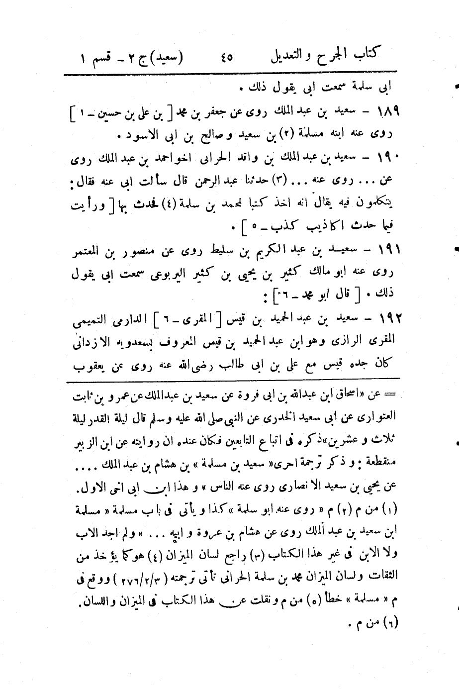 189 - سعيد بن عبد الملك روى عن جعفر بن محمد [بن علي بن حسين - 1] روى عنه ابنه مسلمة (2) بن سعيد وصالح بن أبي الأسود.