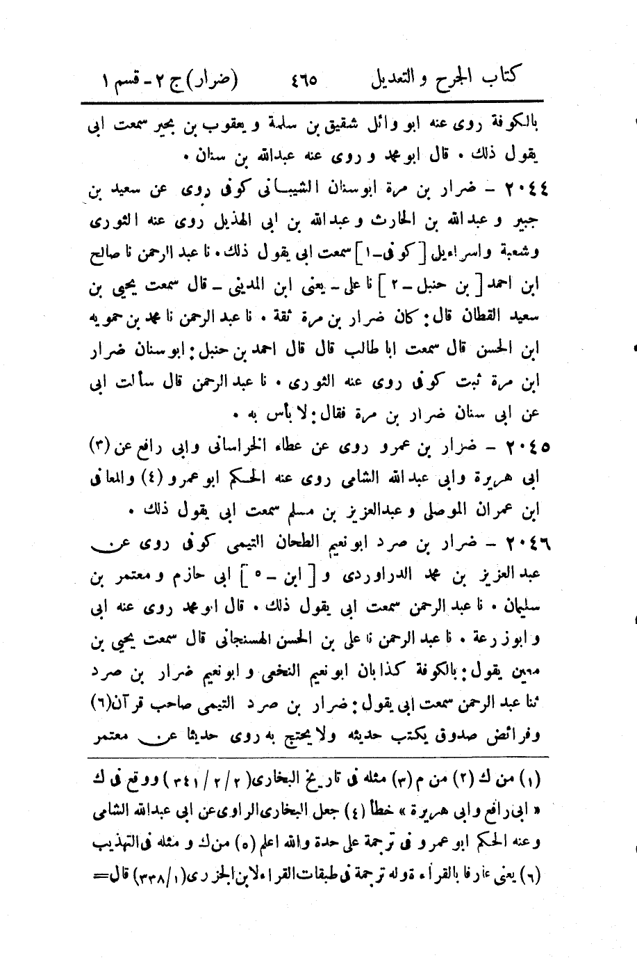 2045 - ضرار بن عمرو روى عن عطاء الخراساني وأبي رافع عن (3) أبي هريرة وأبي عبد الله الشامي روى عنه الحكم أبو عمرو (4) والمعافى ابن عمران الموصلي وعبد العزيز بن مسلم سمعت أبي يقول ذلك.
