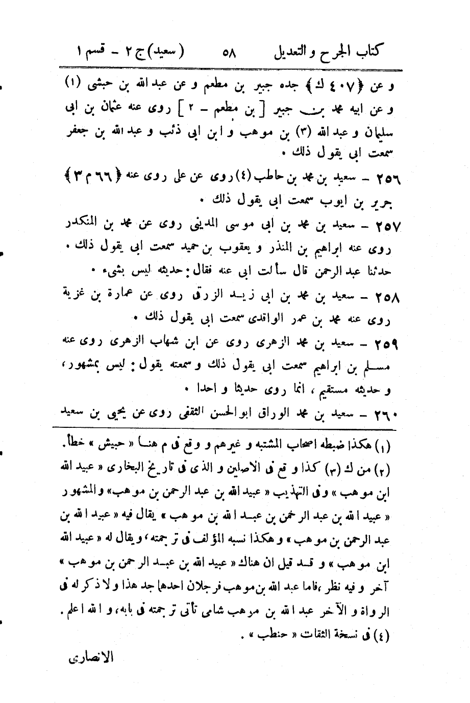 (2) من ك (3) كذا وقع في الاصلين والذى في تاريخ البخاري " عبيد الله ابن موهب " وفى التهذيب " عبيد الله بن عبد الرحمن بن موهب " والمشهور " عبيد الله بن عبد الرحمن بن عبد الله بن موهب " يقال فيه " عبيد الله بن عبد الرحمن بن موهب " وهكذا نسبه المؤلف في ترجمته، ويقال له " عبيد الله ابن موهب " وقد قيل ان هناك " عبيد الله بن عبد الرحمن بن موهب " آخر وفيه نظر، فاما عبد الله بن موهب فرجلان احدهما جد هذا ولا ذكر له في الرواة والآخر عبد الله بن موهب شامى تأتى ترجمته في بابه، والله اعلم.