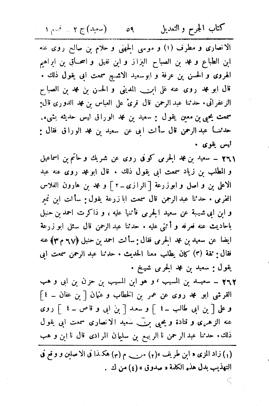 حدثنا عبد الرحمن قال سئل أبو زرعة أيضا عن سعيد بن محمد الجرمي فقال: سألت أحمد بن حنبل (67 م 3) عنه فقال: ثقة (3) كان يطلب معنا الحديث.