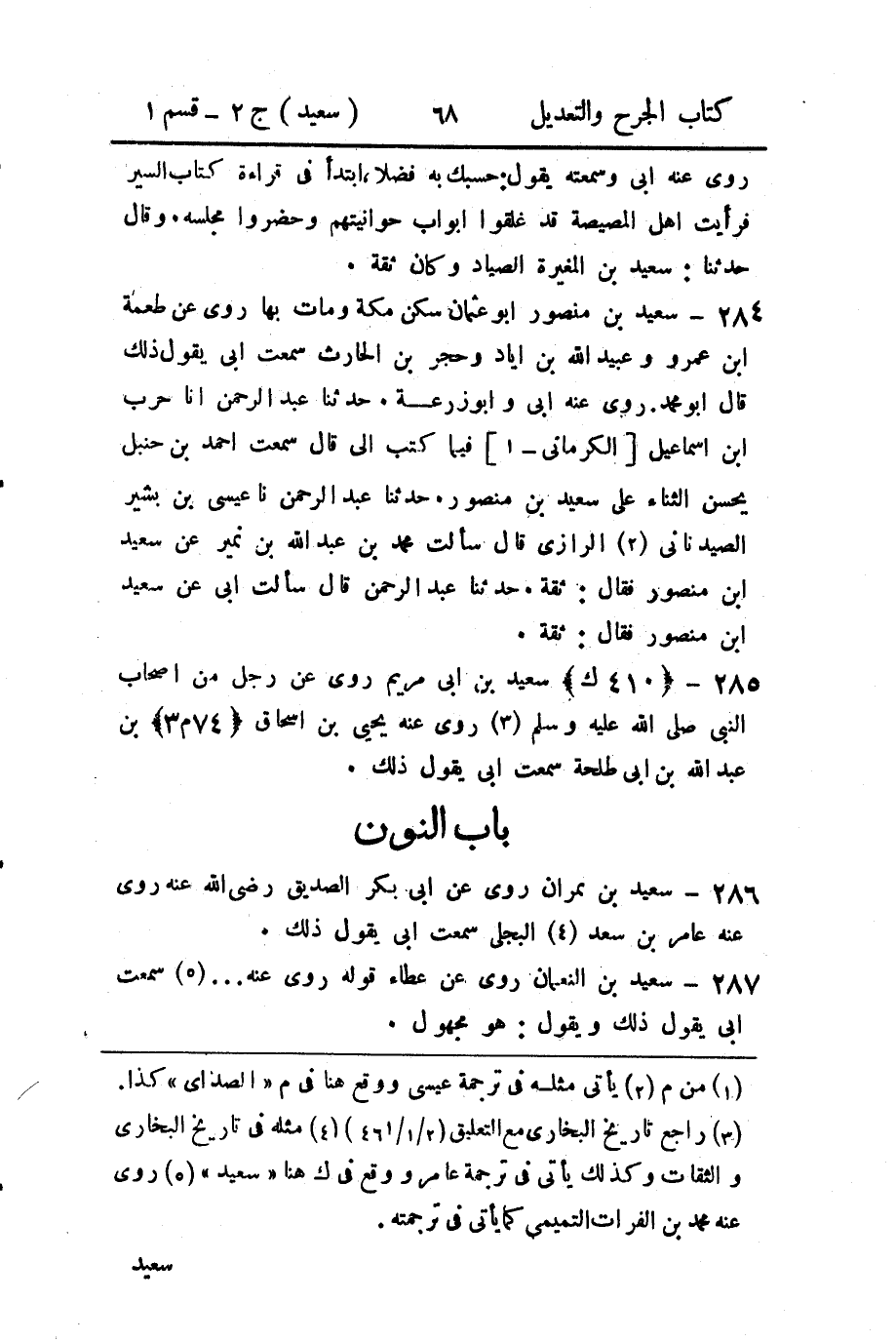 حدثنا عبد الرحمن نا عيسى بن بشير الصيدناني (2) الرازي قَالَ سَأَلْتُ مُحَمَّدَ بْنَ عَبْدِ الله بن نمير عن سعيد ابن منصور فقال: ثقة.