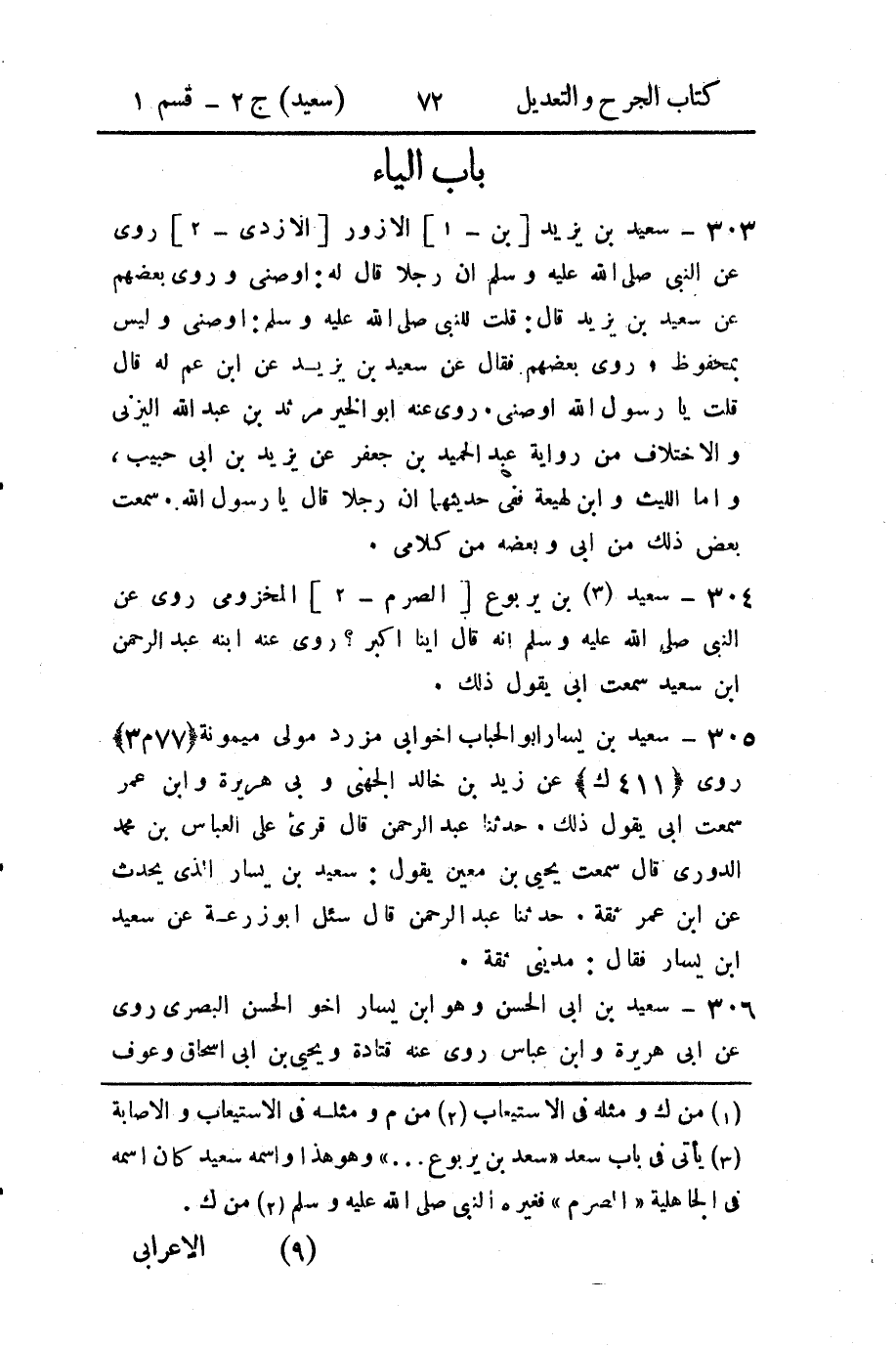 305 - سعيد بن يسار أبو الحباب أخو أبي مزرد مولى ميمونة (77 م 3) روى (411 ك) عن زيد بن خالد الجهني وأبي هريرة وابن عمر سمعت أبي يقول ذلك.