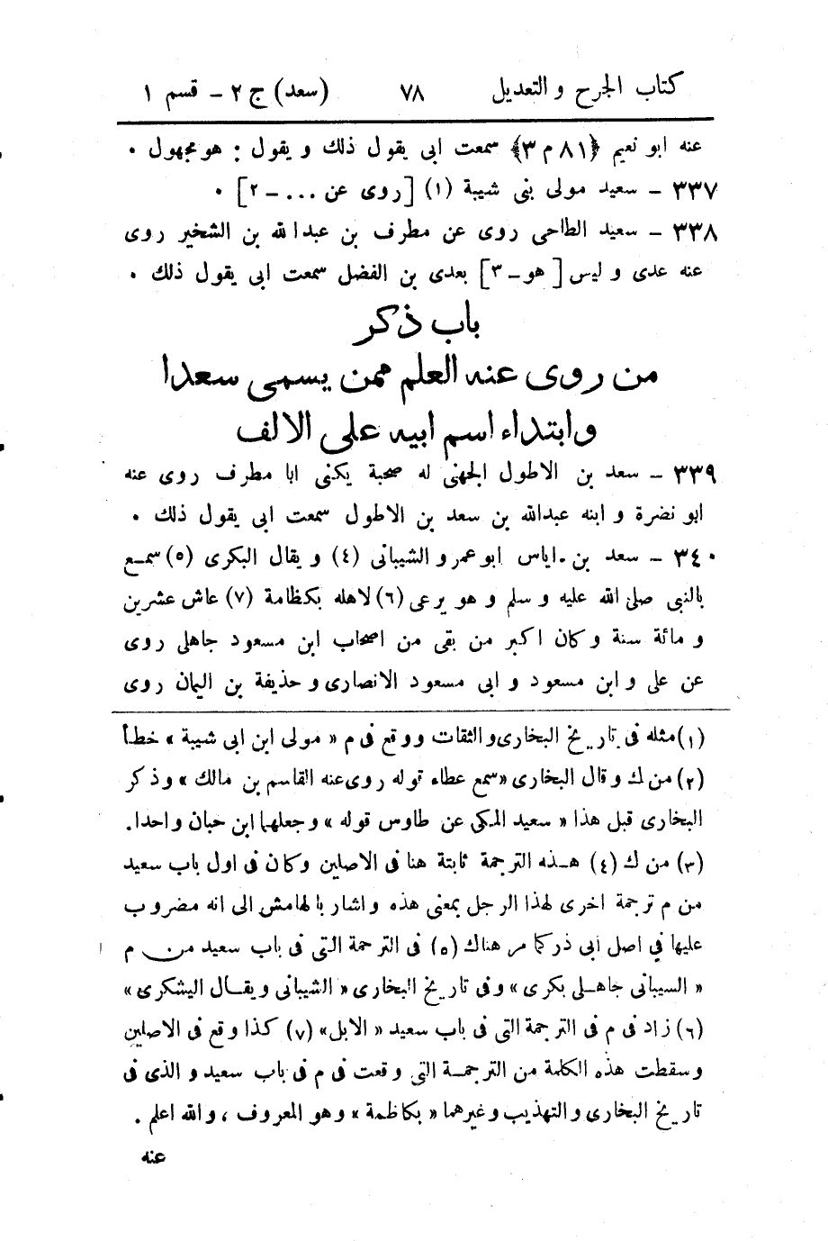 338 - سعيد الطاحي روى عن مطرف بن عبد الله بن الشخير روى عنه عدي وليس [هو - 3] بعدي بن الفضل سمعت أبي يقول ذلك.