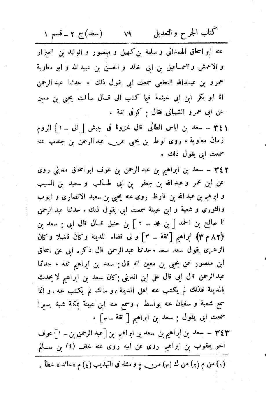 343 - سعد بن إبراهيم بن سعد بن إبراهيم بن [عبد الرحمن بن - 1] عوف أخو يعقوب بن إبراهيم روى عن أبيه روى عنه خلف (4) بن سالم
