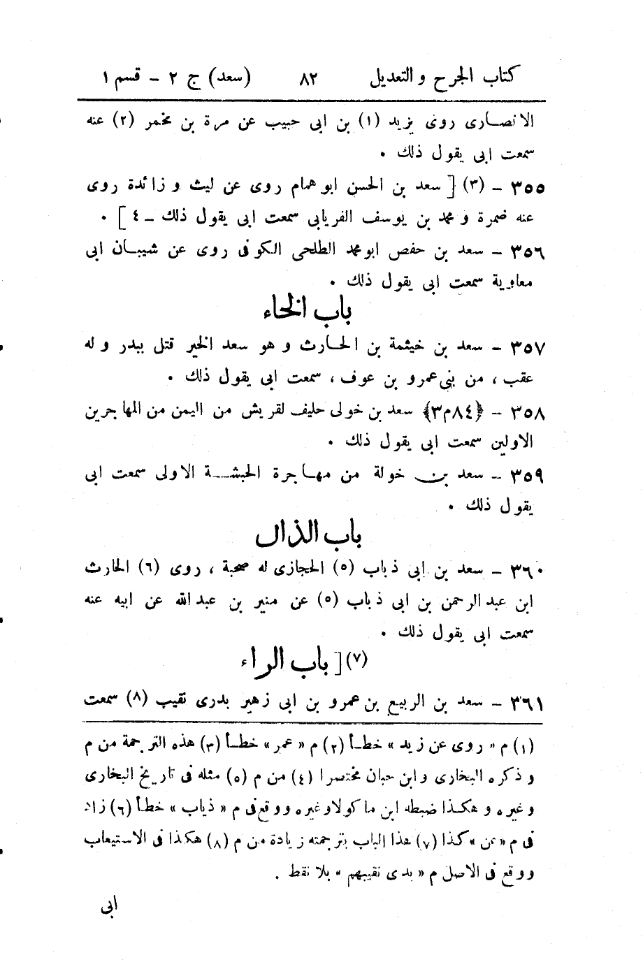 (1) م " روى عن زيد " خطأ (2) م " عمر " خطأ (3) هذه الترجمة من م وذكره البخاري وابن حبان مختصرا (4) من م (5) مثله في تاريخ البخاري وغيره وهكذا ضبطه ابن ماكولا وغيره ووقع في م " ذياب " خطأ (6) زاد في م " عن " كذا (7) هذا الباب بترجمته زيادة من م (8) هكذا في الاستيعاب ووقع في الاصل م " بدى نقيبهم " بلا نقط.