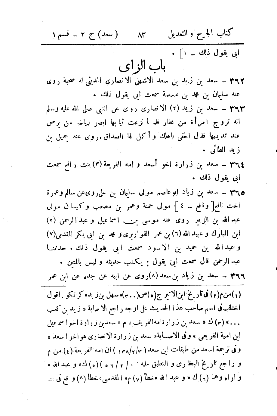 364 - سعد بن زرارة أخو أسعد وأمه الفريعة (3) بنت رافع سمعت أبي يقول ذلك.