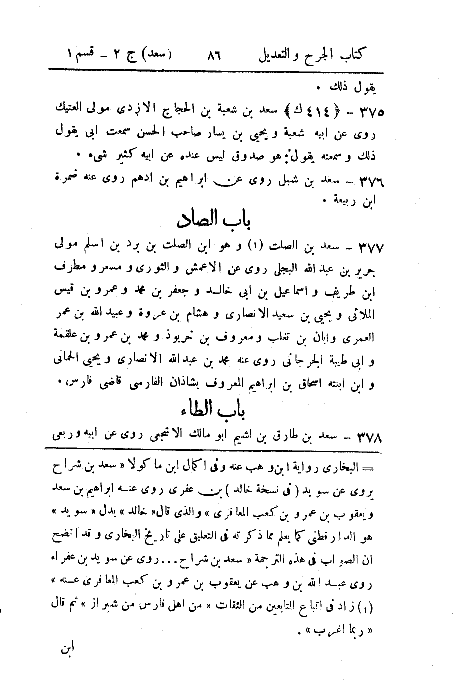 375 - (414 ك) سعد بن شعبة بن الحجاج الأزدي مولى العتيك روى عن أبيه شعبة ويحيى بن يسار صاحب الحسن سمعت أبي يقول ذلك وسمعته يقول: هو صدوق ليس عنده عن أبيه كثير شئ.
