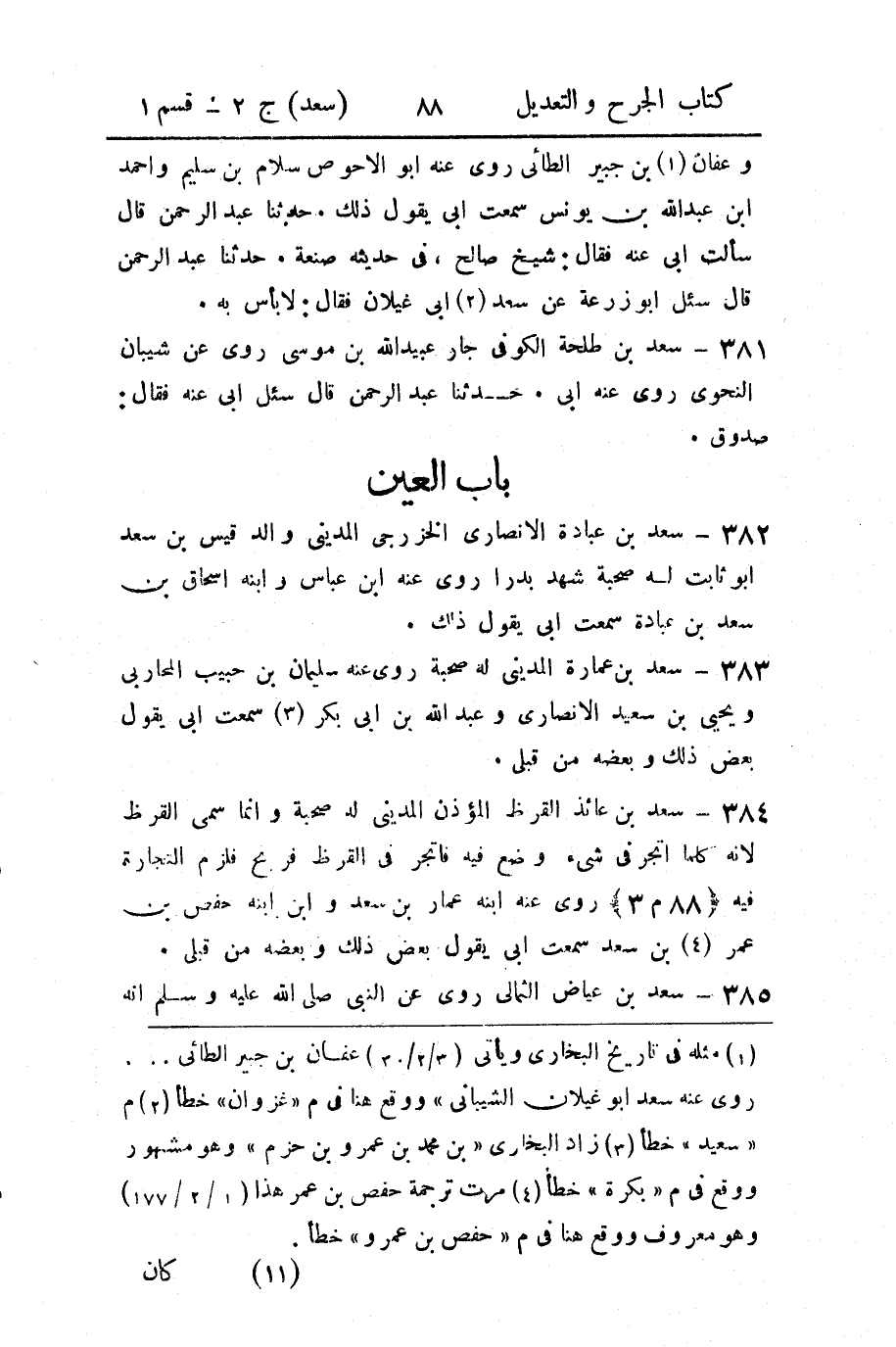(1) مثله في تاريخ البخاري ويأتى (3 / 2 / 30) عفان بن جبير الطائي ... روى عنه سعد أبو غيلان الشيباني " ووقع هنا في م " غزوان " خطأ (2) م " سعيد " خطأ (3) زاد البخاري " بن محمد بن عمرو بن حزم " وهو مشهور ووقع في م " بكرة " خطأ (4) مرت ترجمة حفص بن عمر هذا (1 / 2 / 177) وهو معروف ووقع هنا في م " حفص بن عمرو " خطأ.