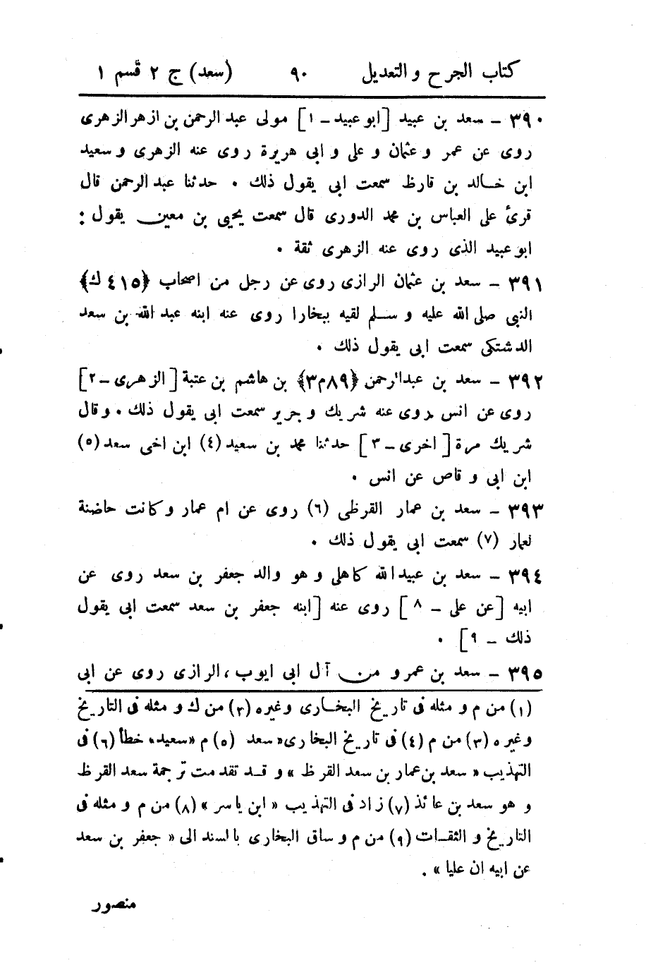 391 - سعد بن عثمان الرازي روى عن رجل من اصحاب (415 ك) النبي صلى الله عليه وسلم لقيه ببخارا روى عنه ابنه عبد الله بن سعد الدشتكي سمعت أبي يقول ذلك.