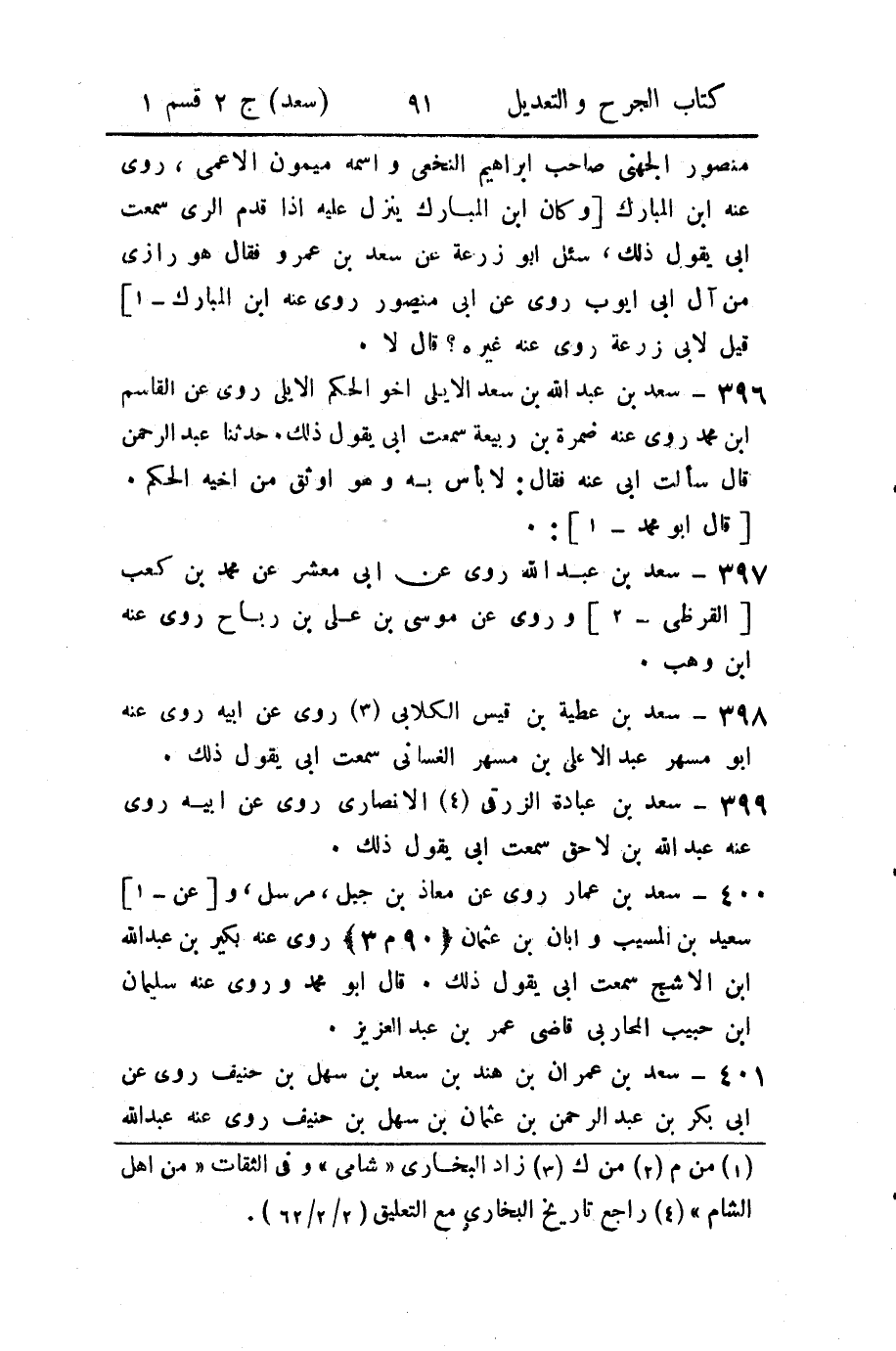 397 - سعد بن عبد الله روى عن أبي معشر عن محمد بن كعب [القرظي - 2] وروى عن موسى بن علي بن رباح روى عنه ابن وهب.