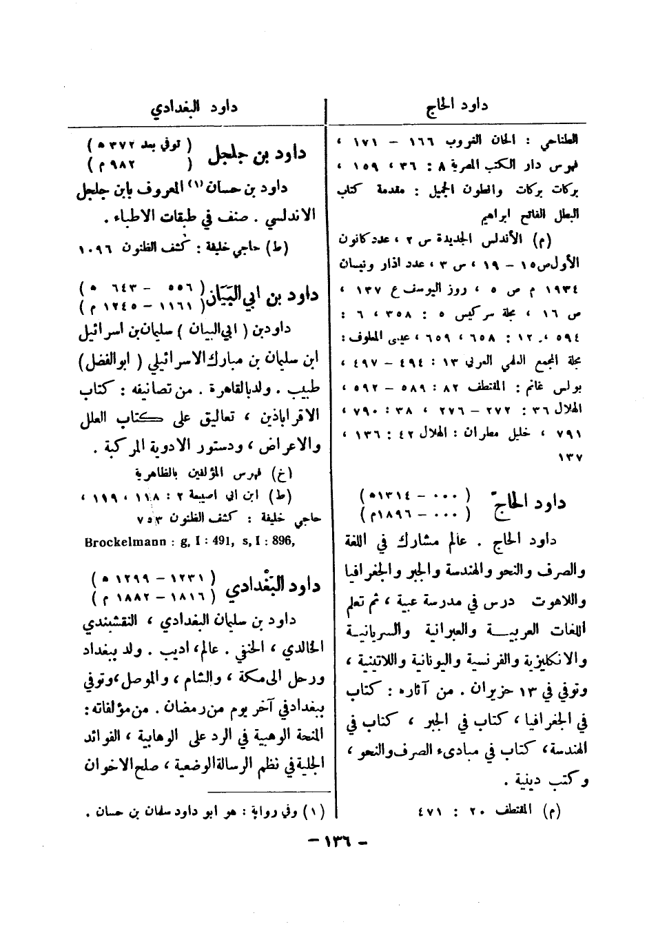 (ط) حاجي خليفة: كشف الظنون 1096 داود بن ابي البيان (556 - 643 هـ)