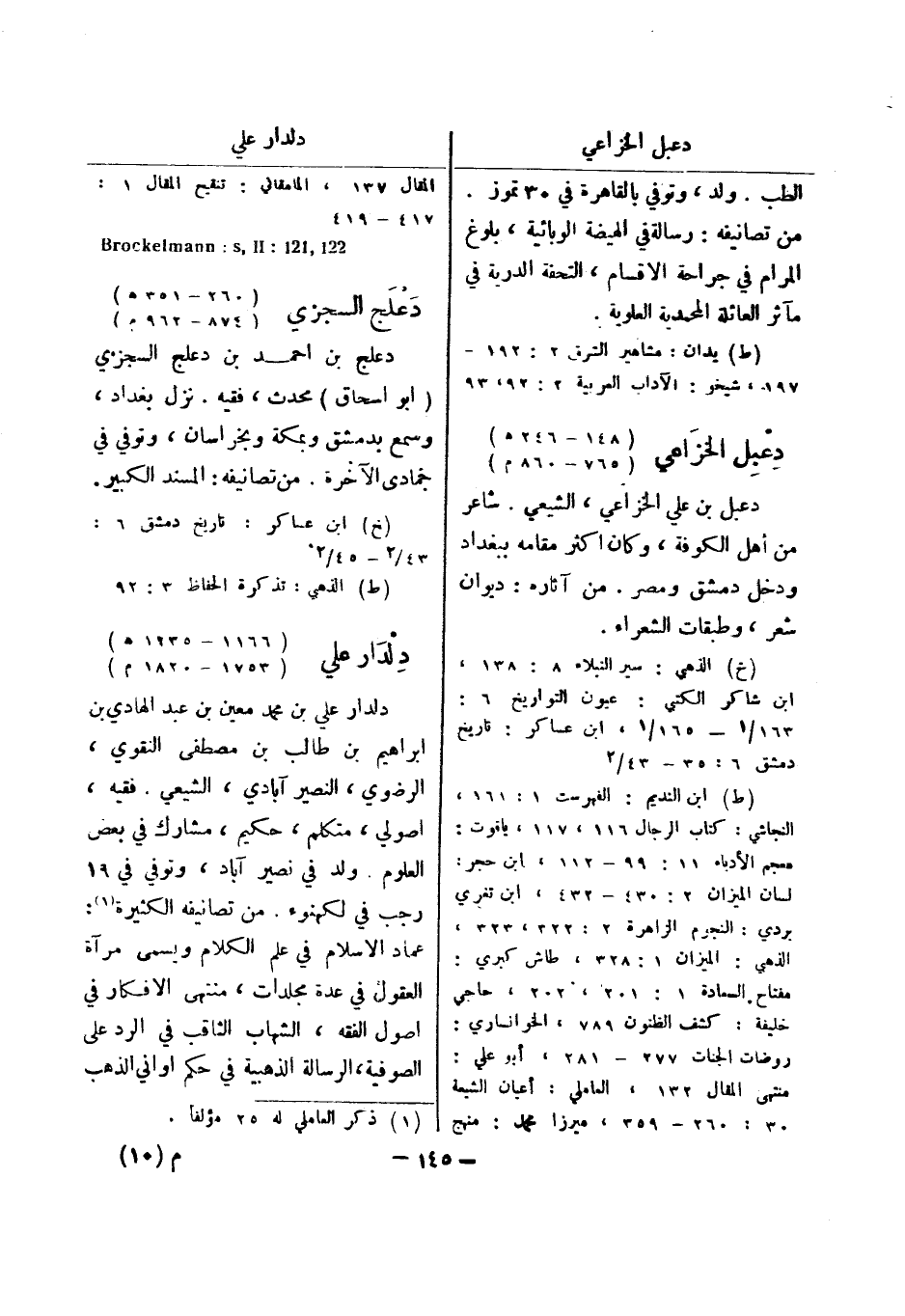 122 , 121: Brockelmann: s , II دعلج السجزي (260 - 351 هـ) (874 - 962 م) دعلج بن احمد بن دعلج السجزي (أبو اسحاق) محدث، فقيه.