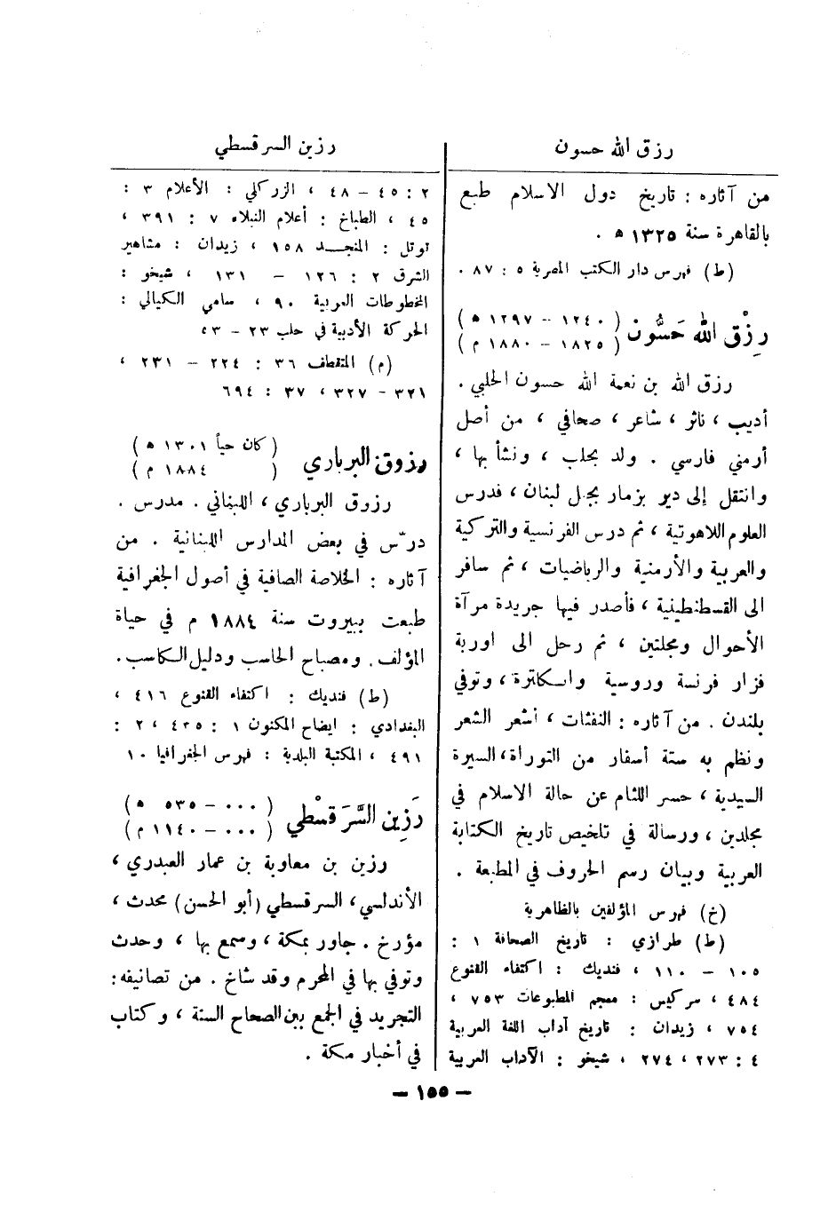 الشرق 2: 126 - 131، شيخو: المخطوطات العربية 90، سامي الكيالي: الحركة الادبية في حلب 23 - 53 (م) المتقطف 36: 224 - 231، 321 - 327، 37: 694 رزوق البرباري (كان حيا 1301 هـ) (1884 م) رزوق البرباري، اللبناني.