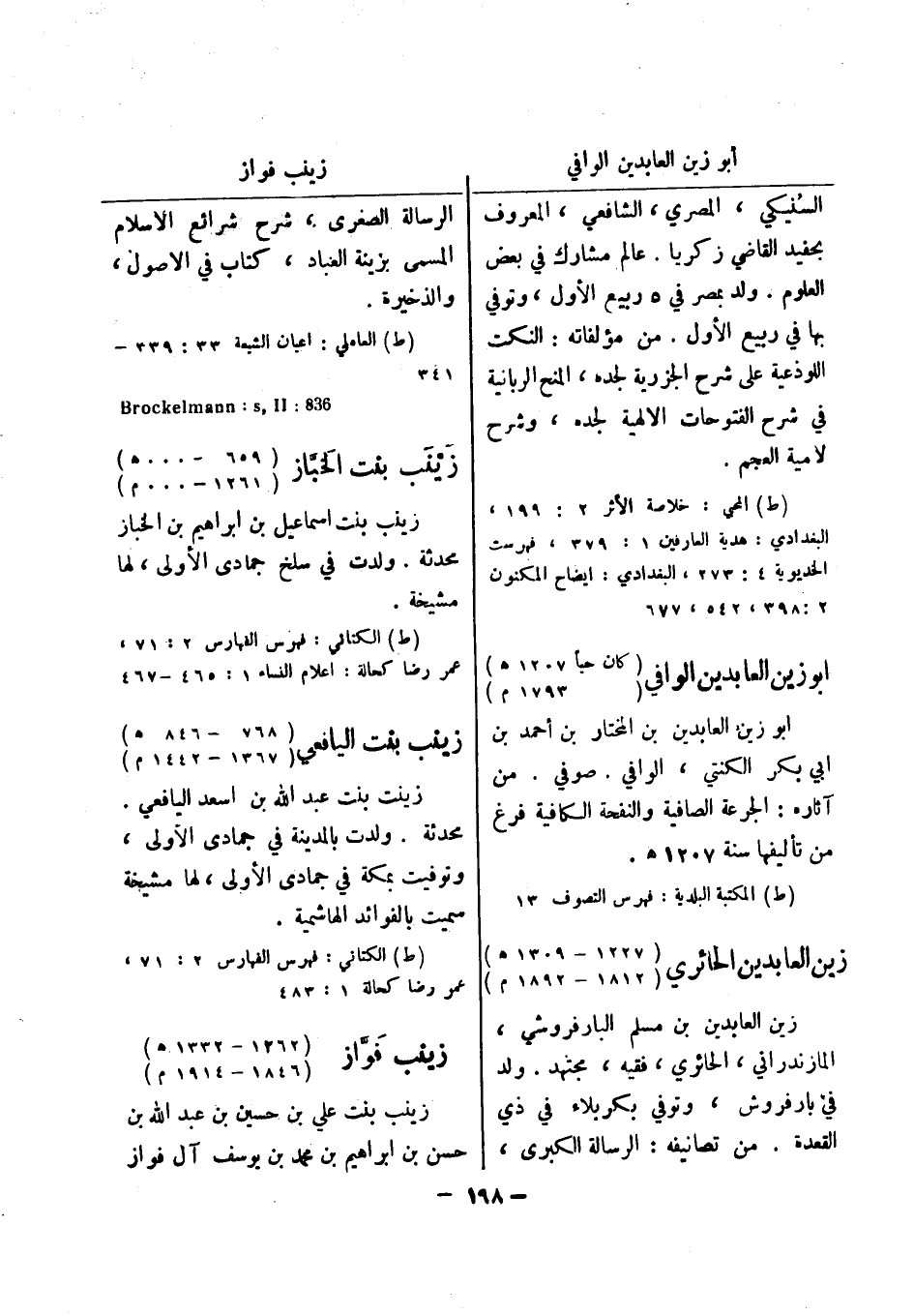 836: Brockelmann: s , II زينب بنت الخباز (659 - 000 هـ) (1261 - 000 م) زينب بنت اسماعيل بن ابراهيم بن الخباز محدثة.