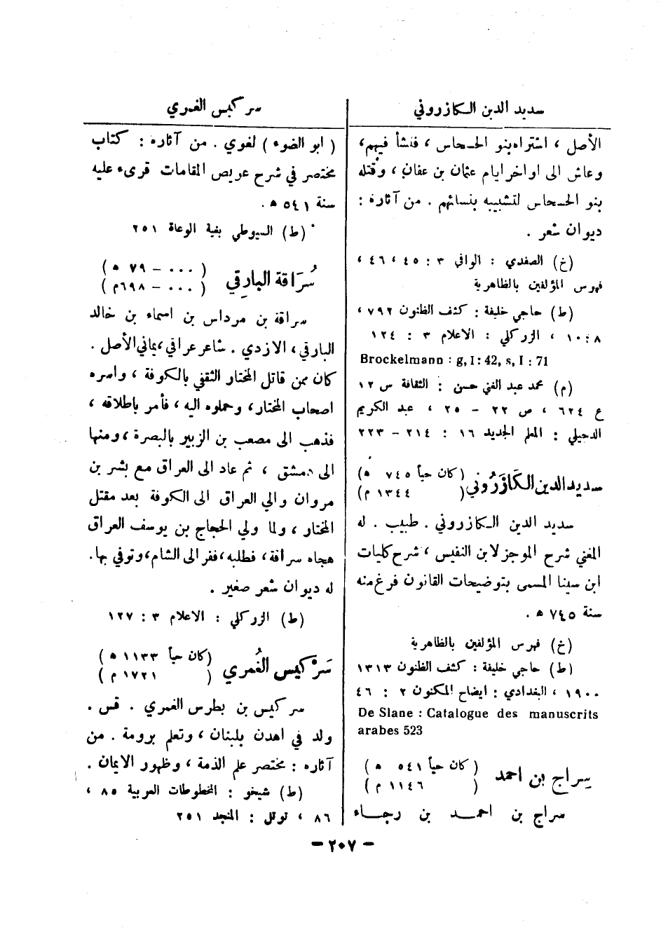 (خ) فهرس المؤلفين بالظاهرية (ط) حاجي خليفة: كشف الظنون 1313 1900، البغدادي: ايضاح المكنون 2: 46 De Slane: Catalogue des manuscrits 523 arabes سراج بن احمد (كان حيا 541 هـ) (1146 م) سراج بن احمد بن رجاء (أبو الضوء) لغوي.