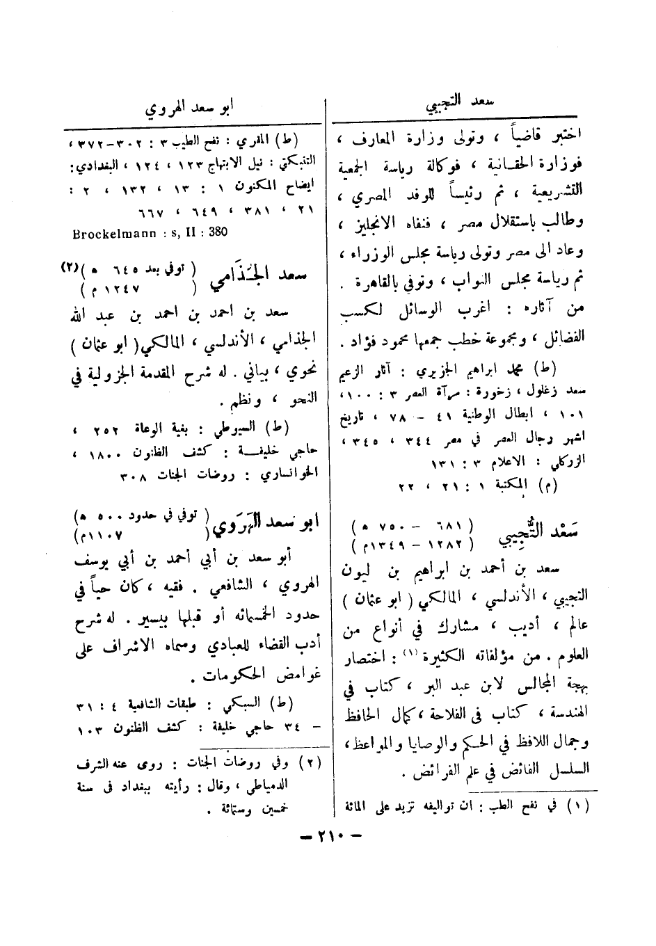 (ط) المقري: نفح الطيب 3: 302 - 372، التنبكتي: نيل الابتهاج 123، 124، البغدادي: ايضاح المكنون 1: 13، 132، 2: 21، 381، 649، 667 380: Brockelmann: s , II سعد الجذامي (توفي بعد 645 هـ) (2) (1247 م) سعد بن احمد بن احمد بن عبد الله الجذامي، الاندلسي، المالكي (أبو عثمان) نحوي، بياني.