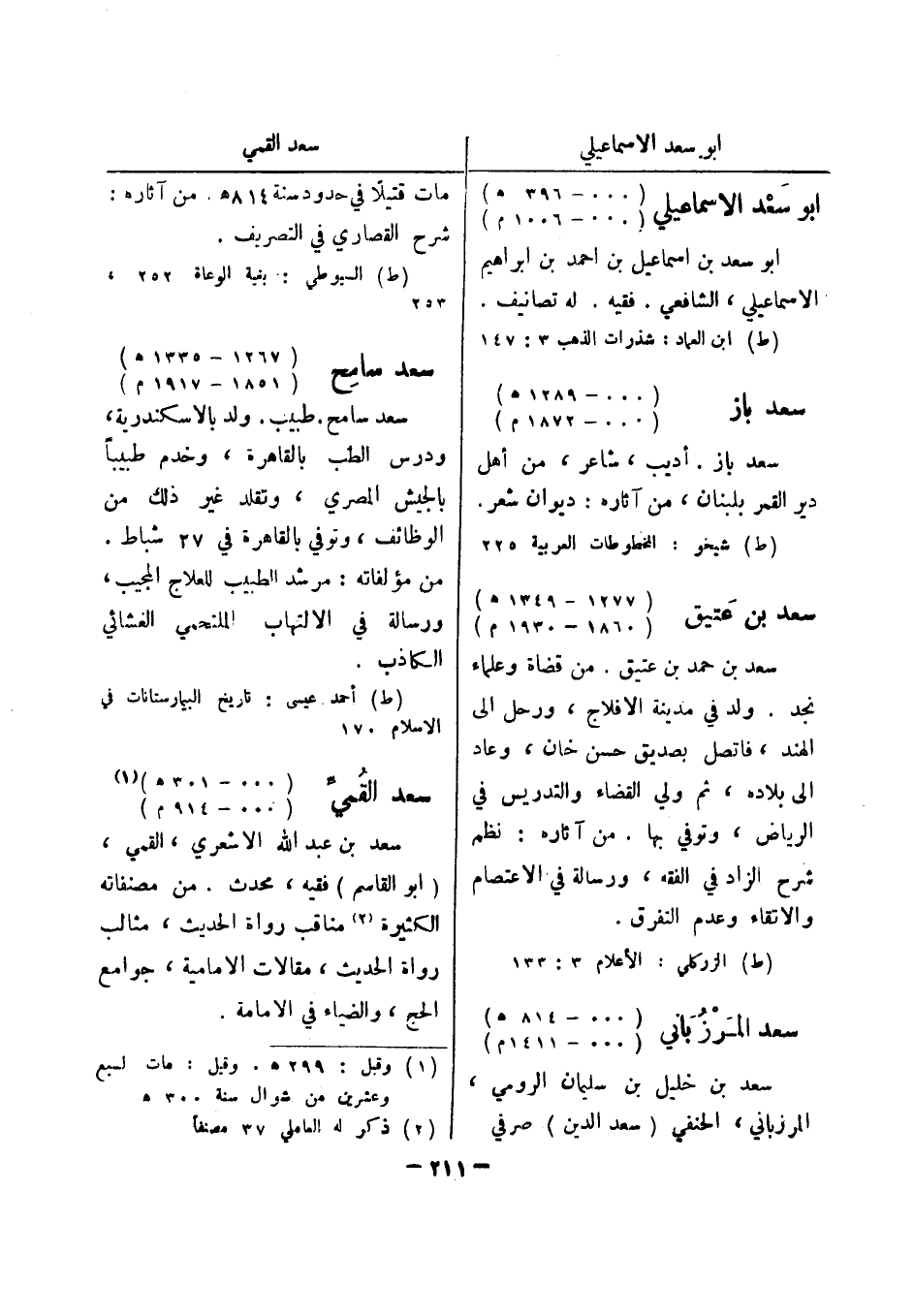(ط) الزركلي: الاعلام 3: 133 سعد المرزباني (000 - 814 هـ) (000 - 1411 م)