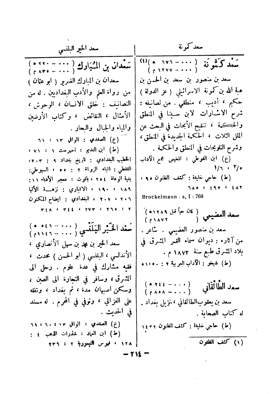 (1) كشف الظنون سعدان بن المبارك (000 - 220 هـ) (000 - 835 م) سعدان بن المبارك الضرير (أبو عثمان) من رواة العلم والادب البغداديين.