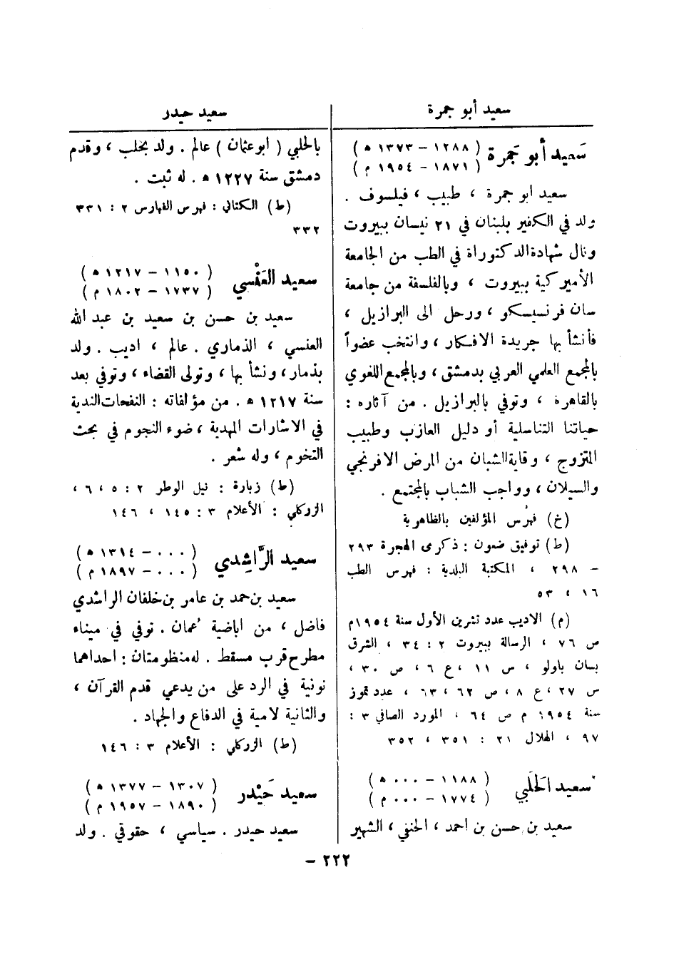(ط) الزركلي: الاعلام 3: 146 سعيد حيدر (1307 - 1377 هـ) (1890 - 1957 م) سعيد حيدر.