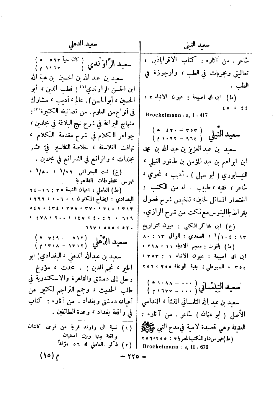 619، 2: 40، 147، 200، 478، 520، 585، 697 سعيد الدهلي (712 - 749 هـ) (1312؟ - 1358؟ م) سعيد بن عبد الله الدهلي، البغدادي (أبو الخير، نجم الدين) .